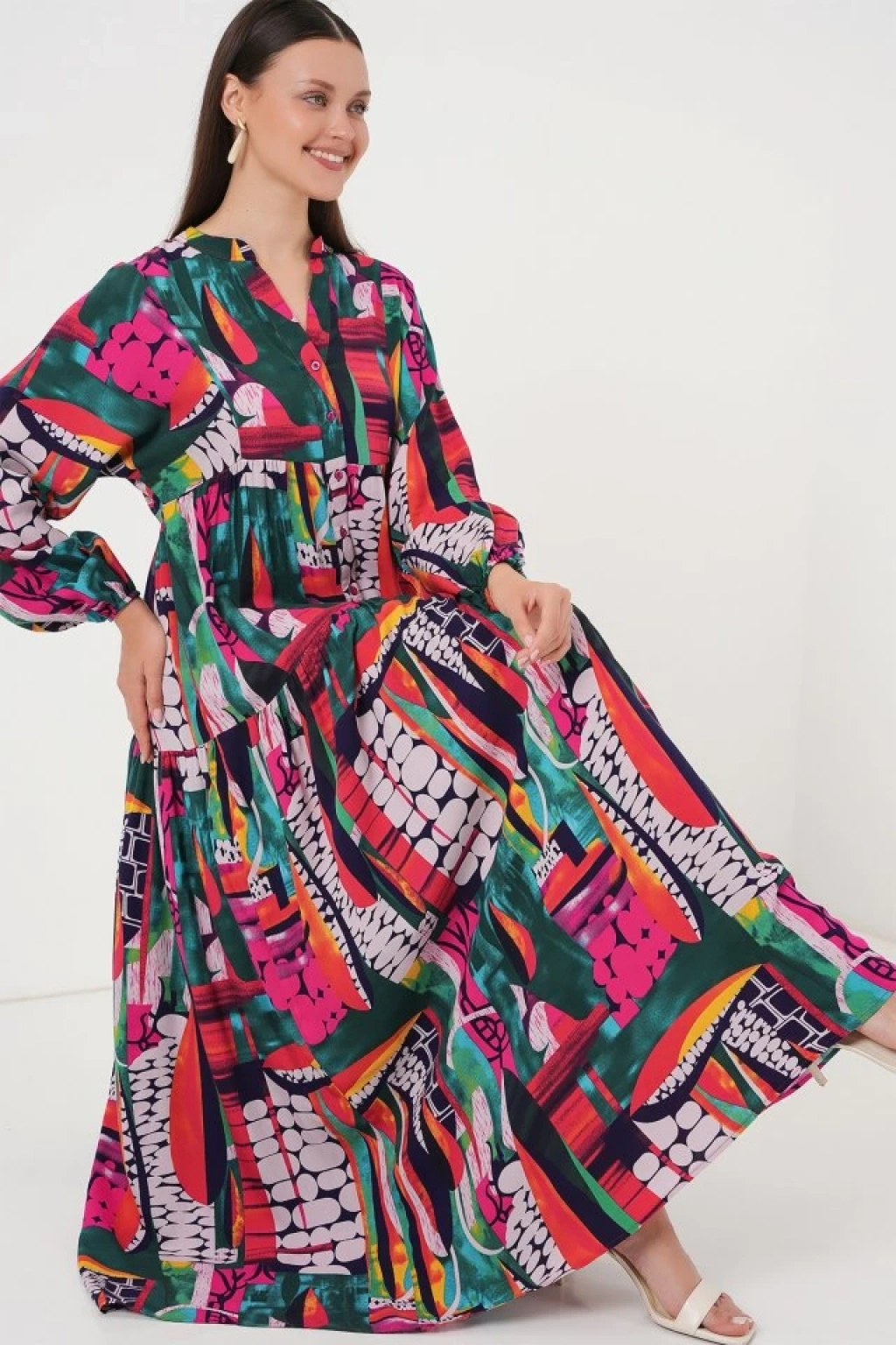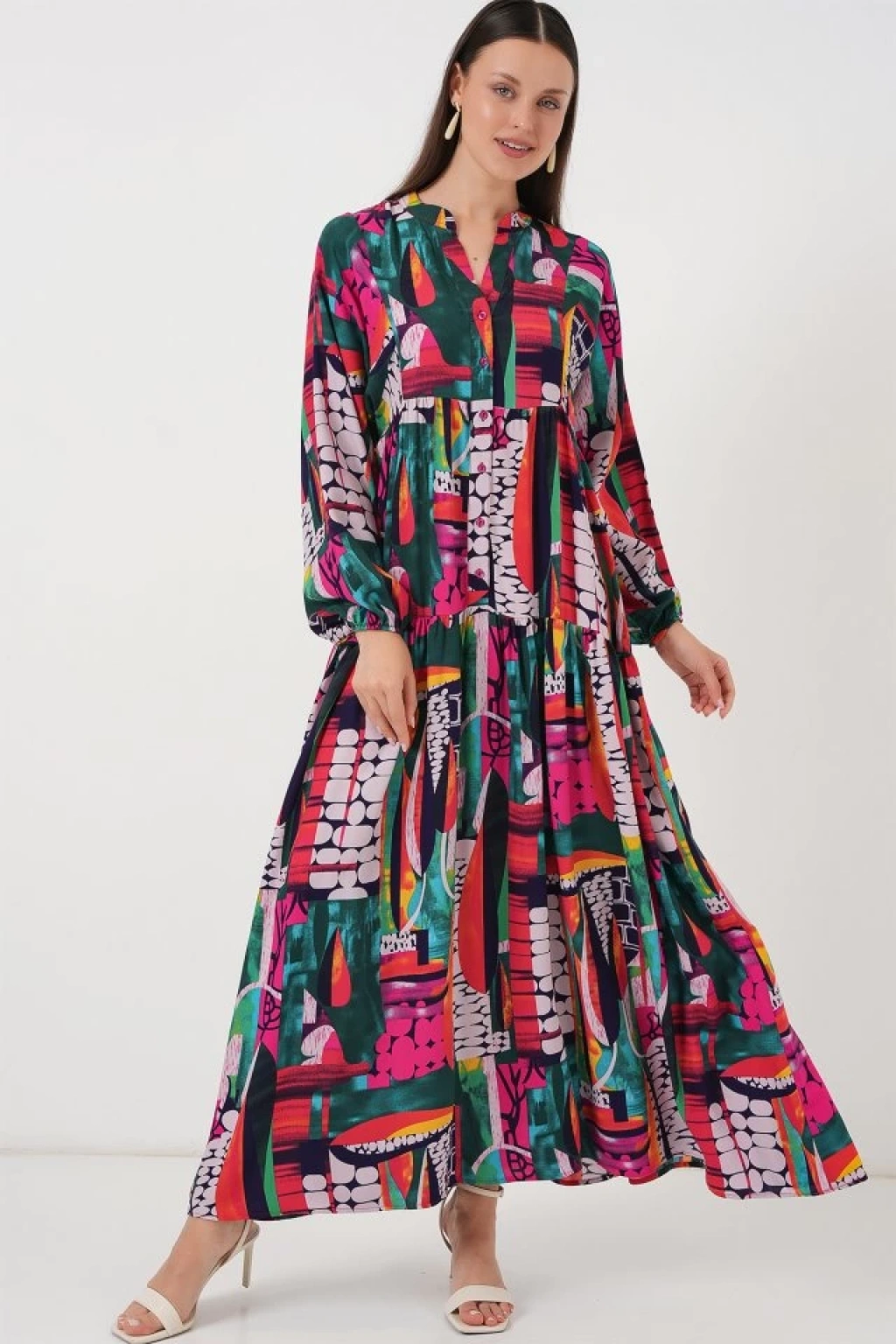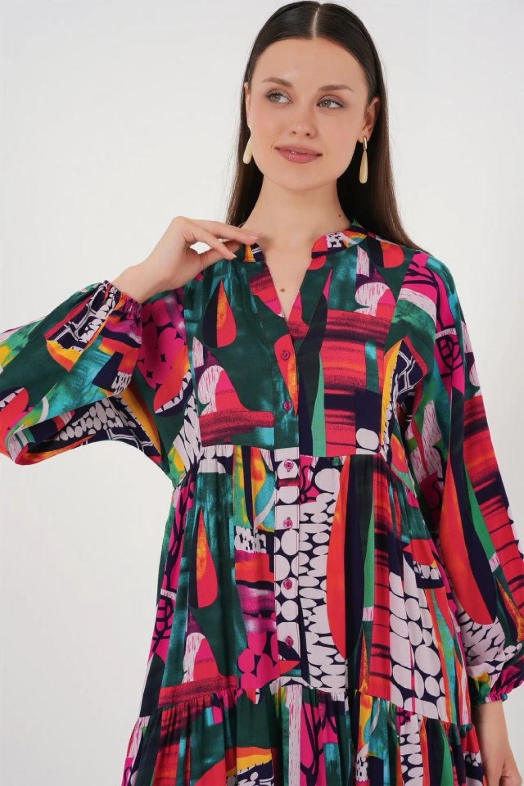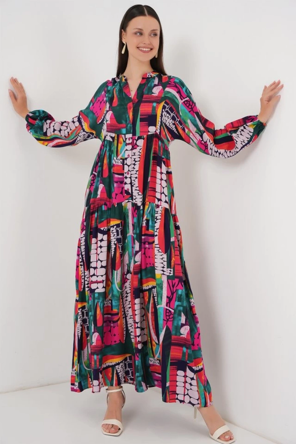2423 Otantik Desenli Tesettür Elbise - ÇOK RENKLİ 2