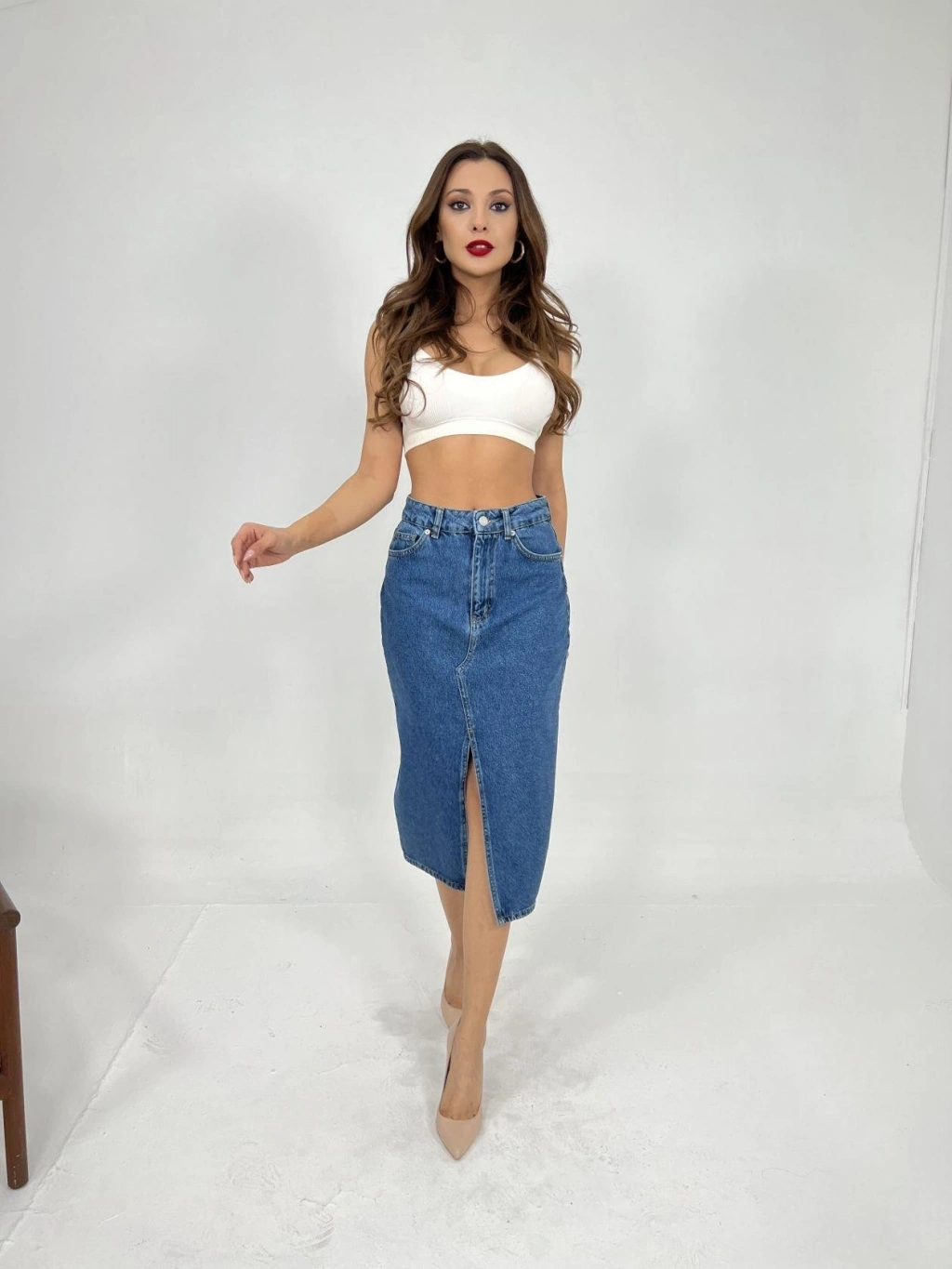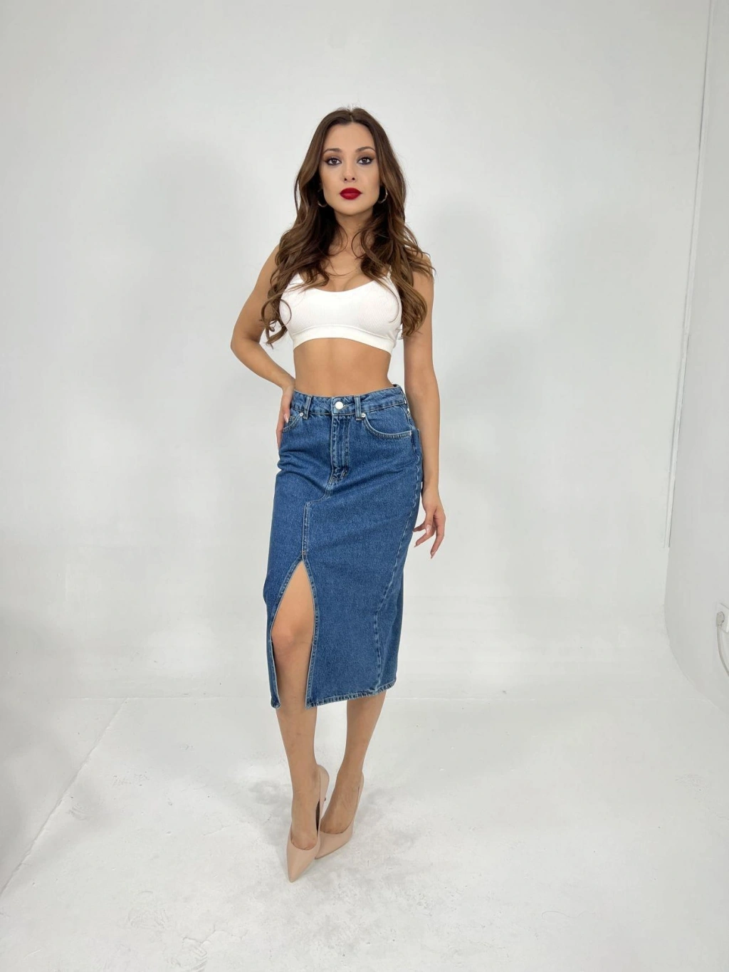 6478 DENİM MIDI SLIT SKIRT-MAVİ