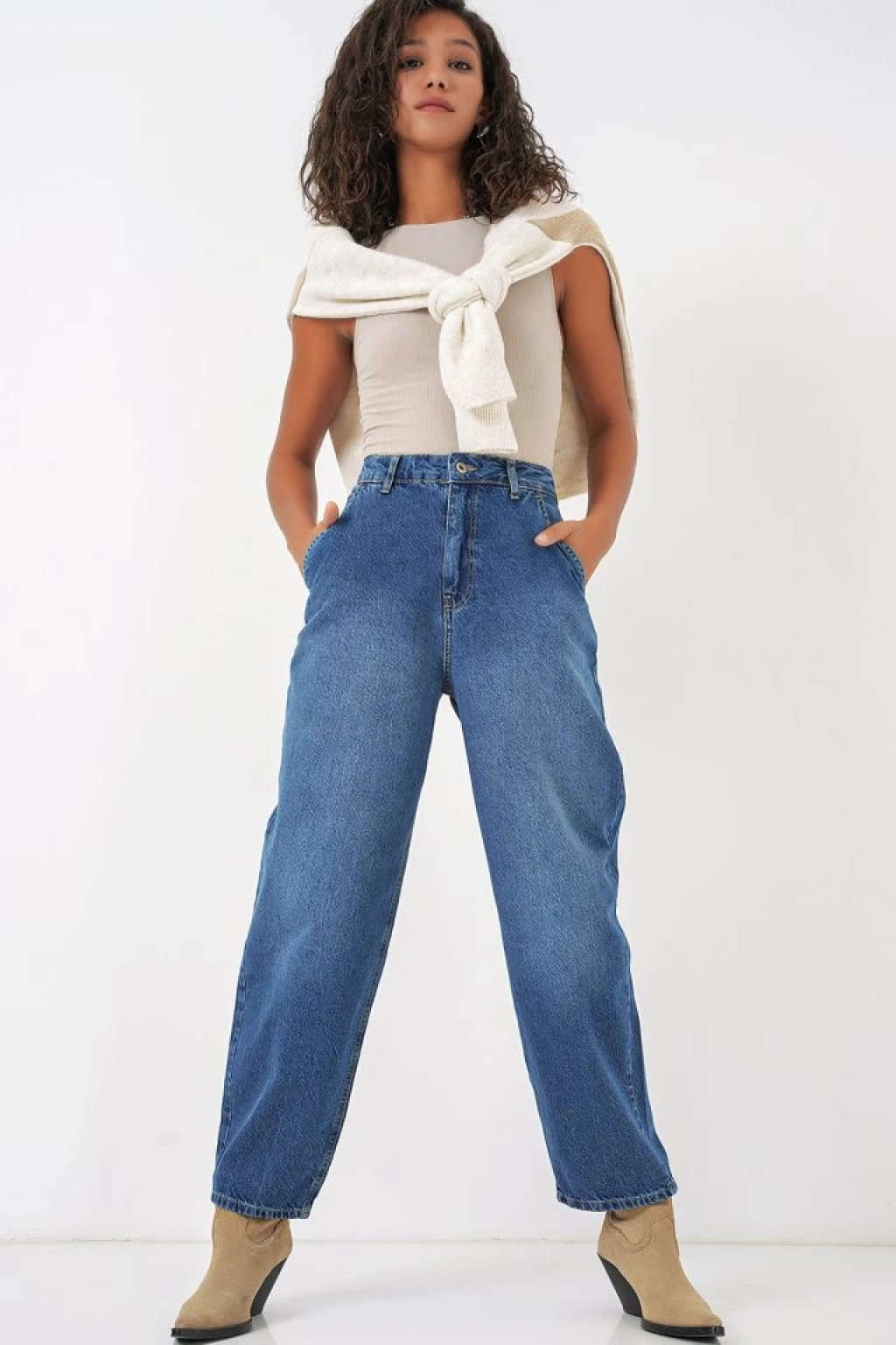 6688 Yüksek Bel Baggy Kot Pantolon - Lacivert