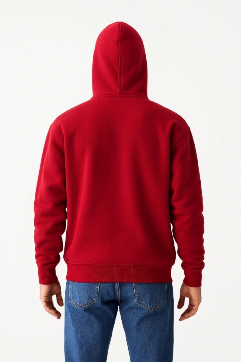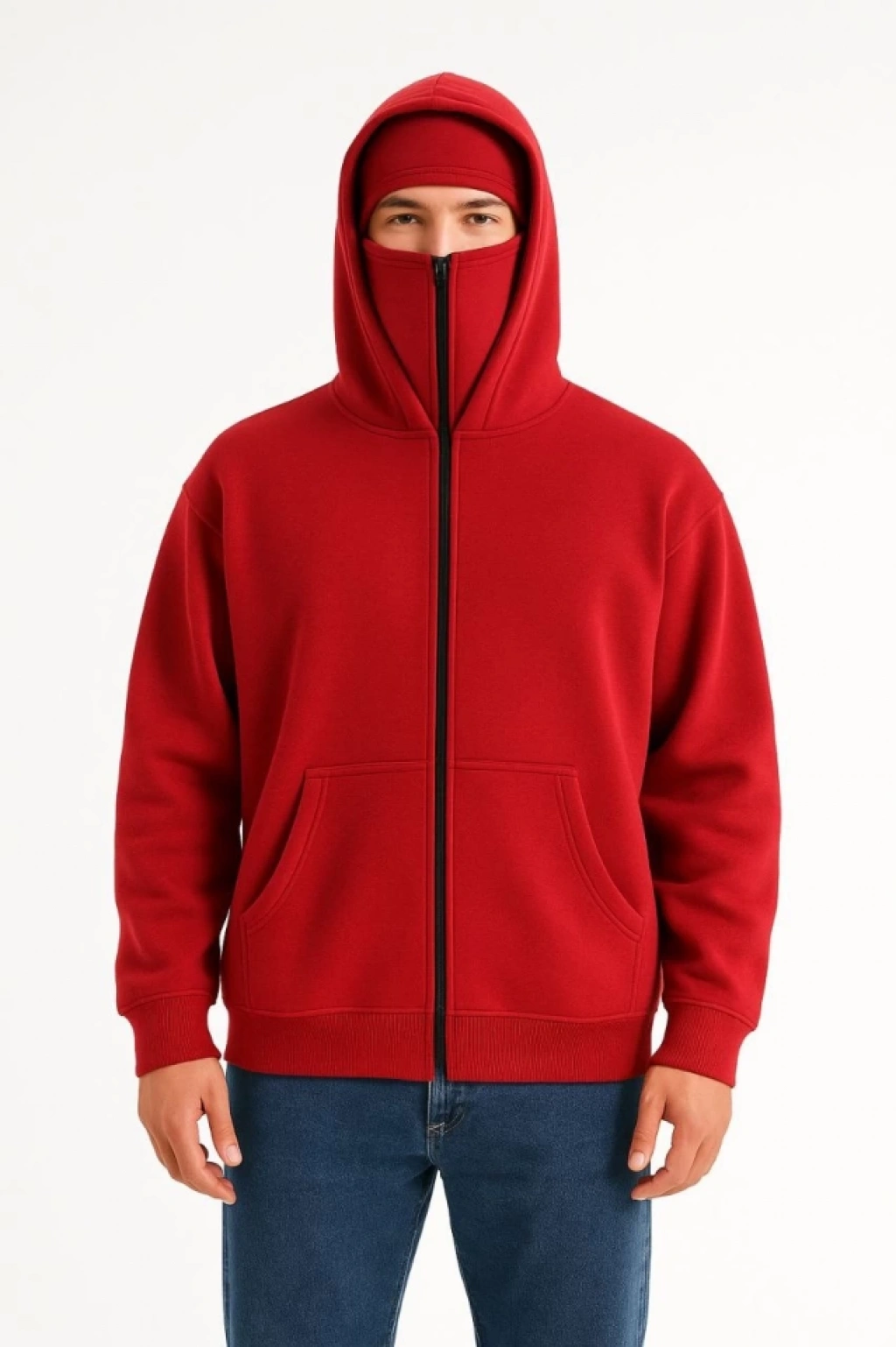 amuray Ninja Çift Kapşonlu ZIP Fermuarlı Kanguru Çepli Tam Fermuarlı Hoodie wetshirt Kırmızı