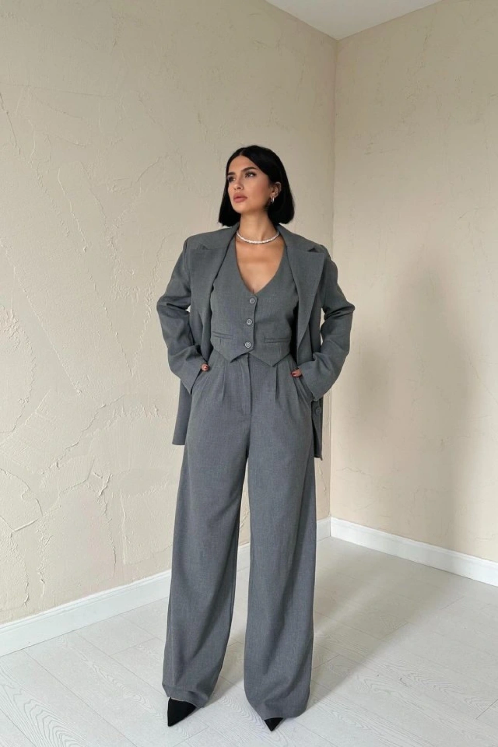 Antrasit Klas Ceket Ve Yelek Ve Pantolon Takım
