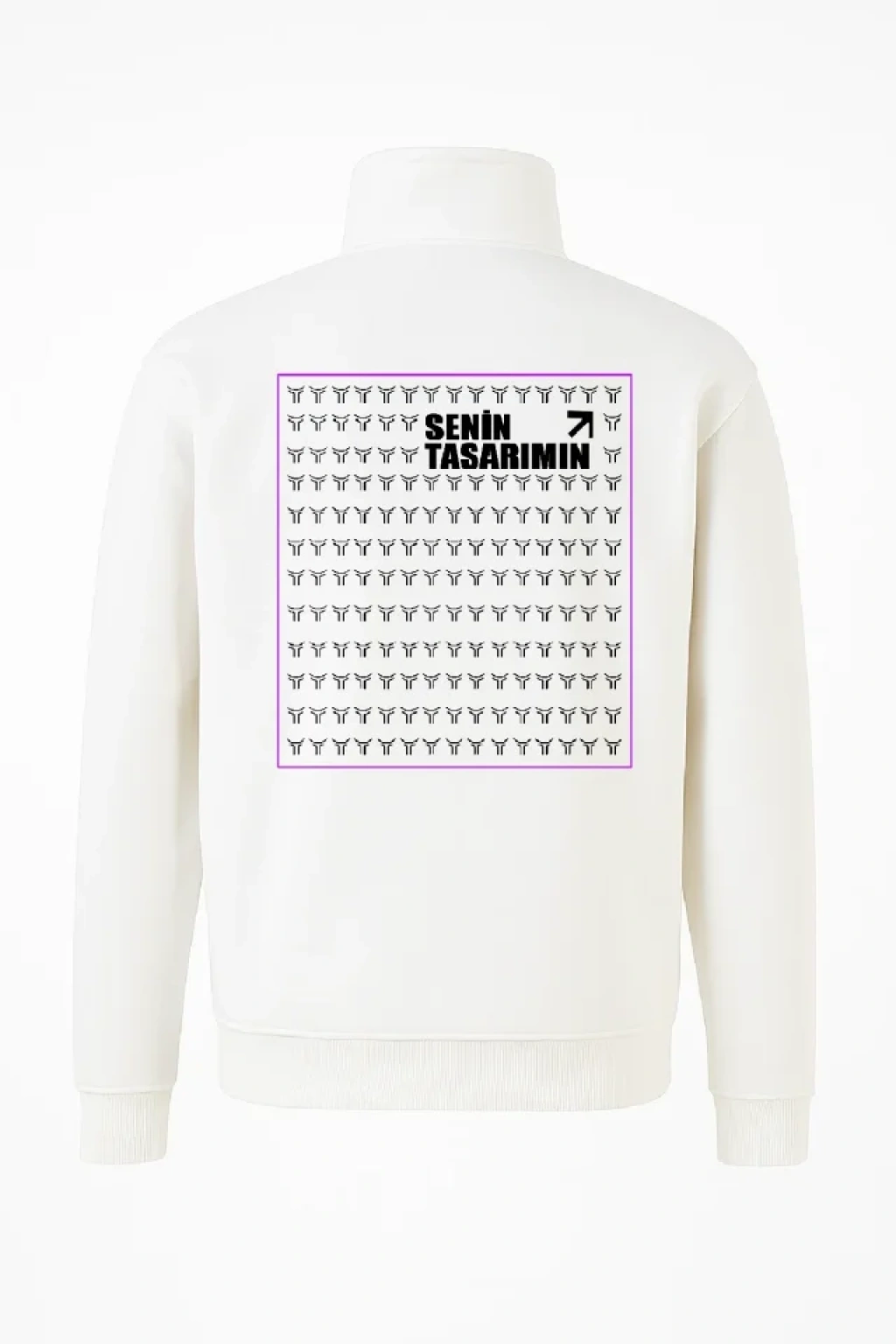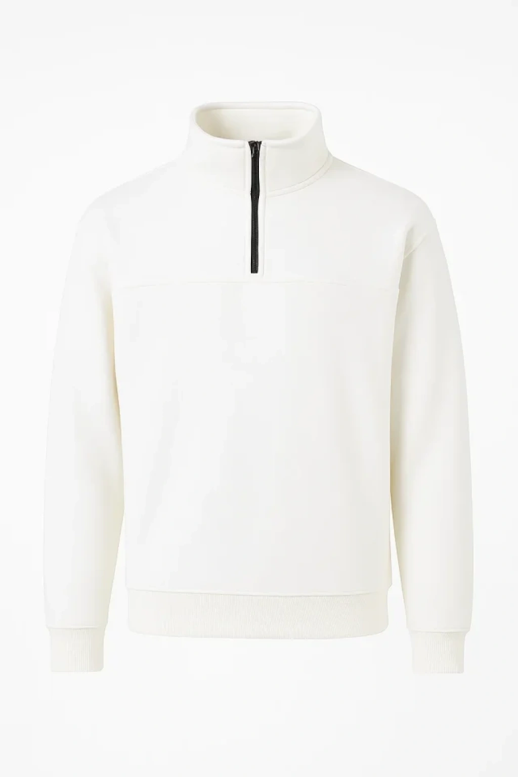 Arka Yarım Fermuarlı Oversize Yakalı Basic weathirt Beyaz