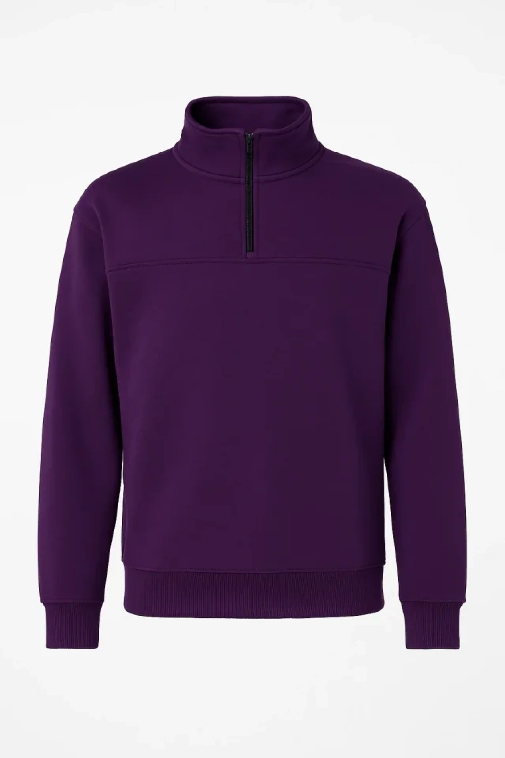 Arka Yarım Fermuarlı Oversize Yakalı Basic SweatShirt - Mor