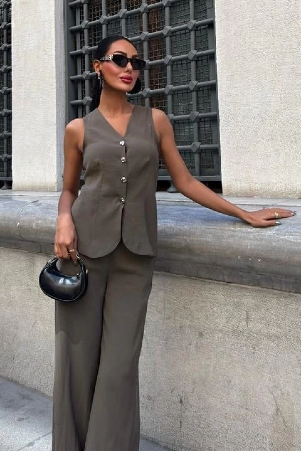 Arkası Bağcıklı Yelek Plazza Pantolon Modal Takım 10202-08