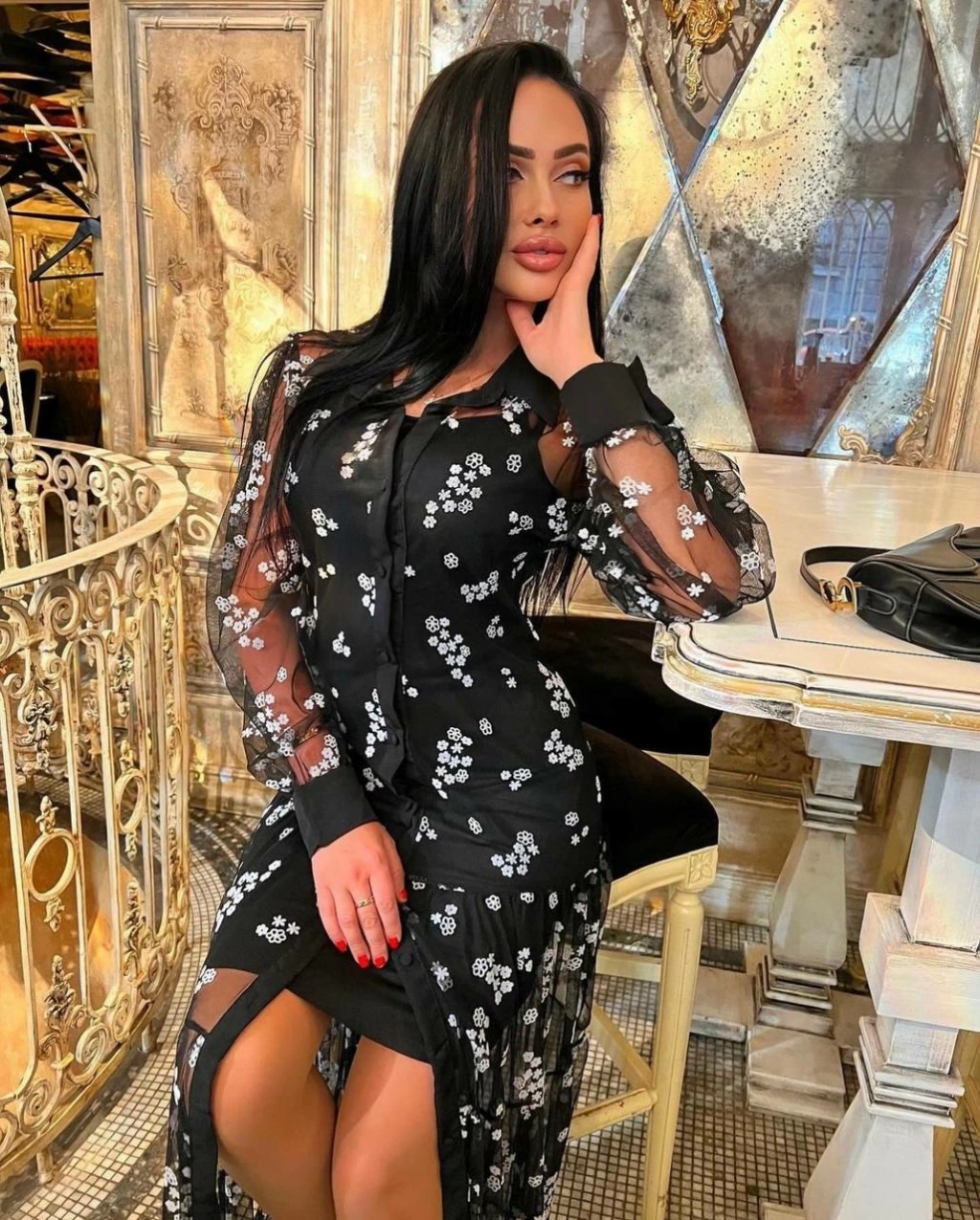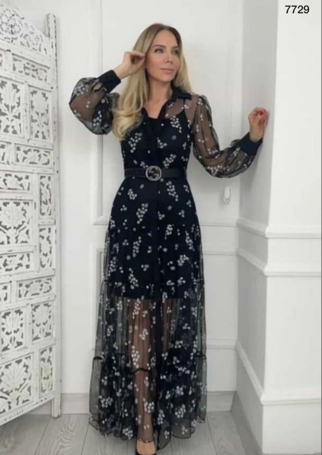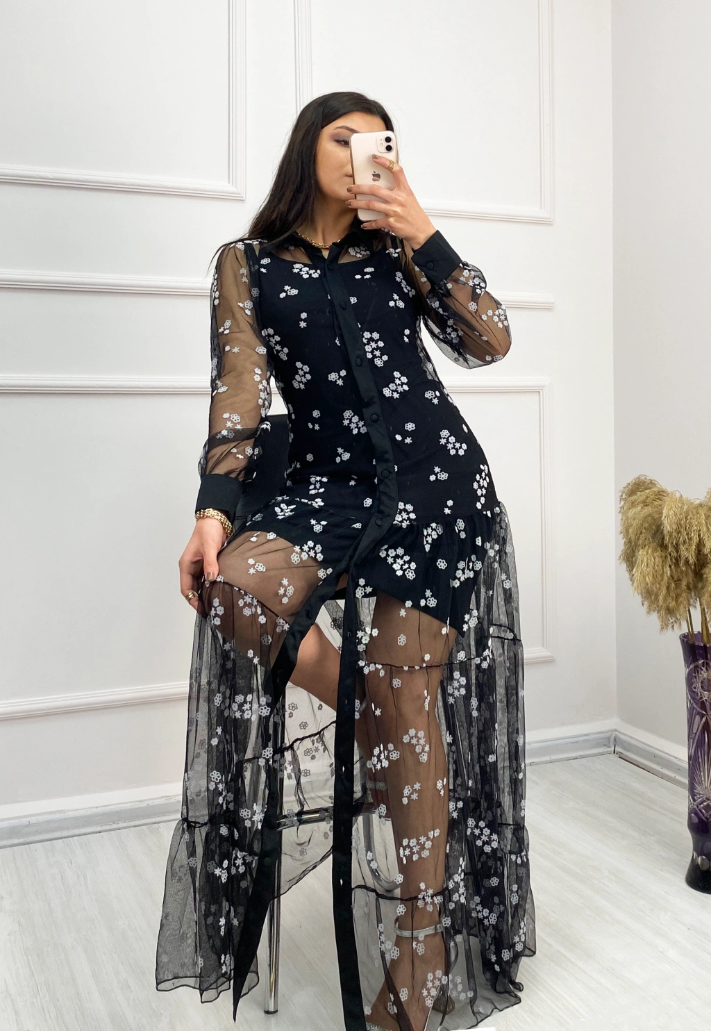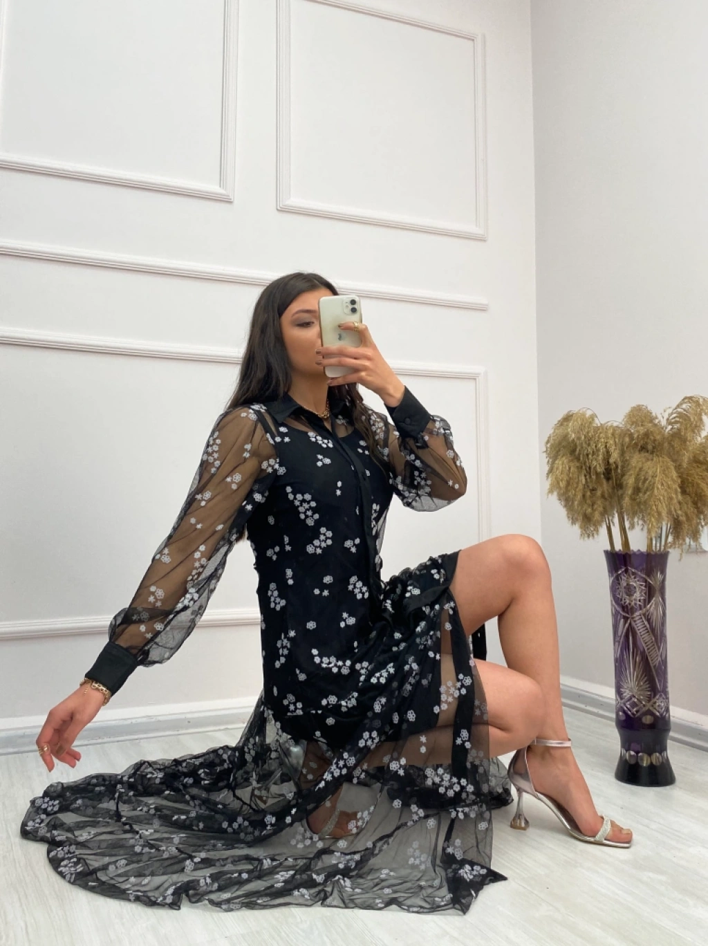 Astar Sandy, Dışı Tül çiçek Desenli Elbise