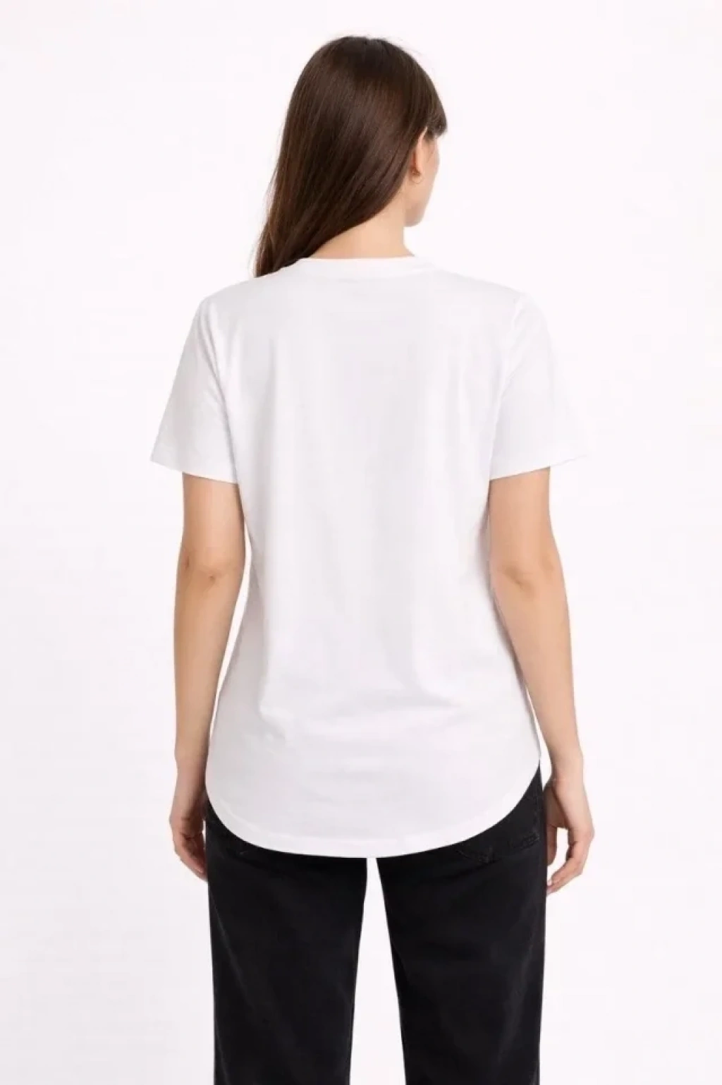 Basic T-Shirt Kısa Kol Bisiklet Yaka Oval Kesim Tişört - Beyaz