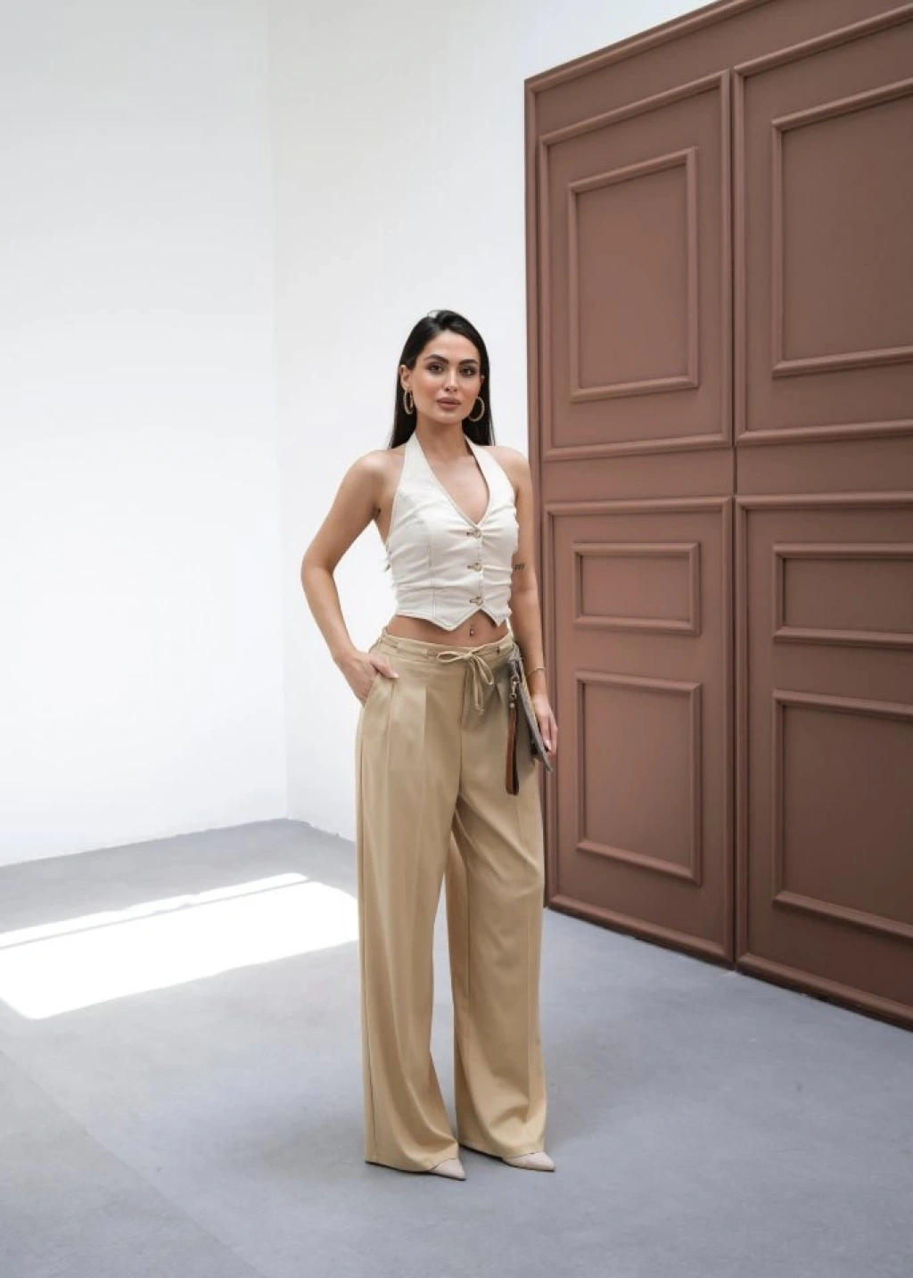 Beli̇ Lasti̇k Ve Bağcikli Geni̇ş Paça Pantolon