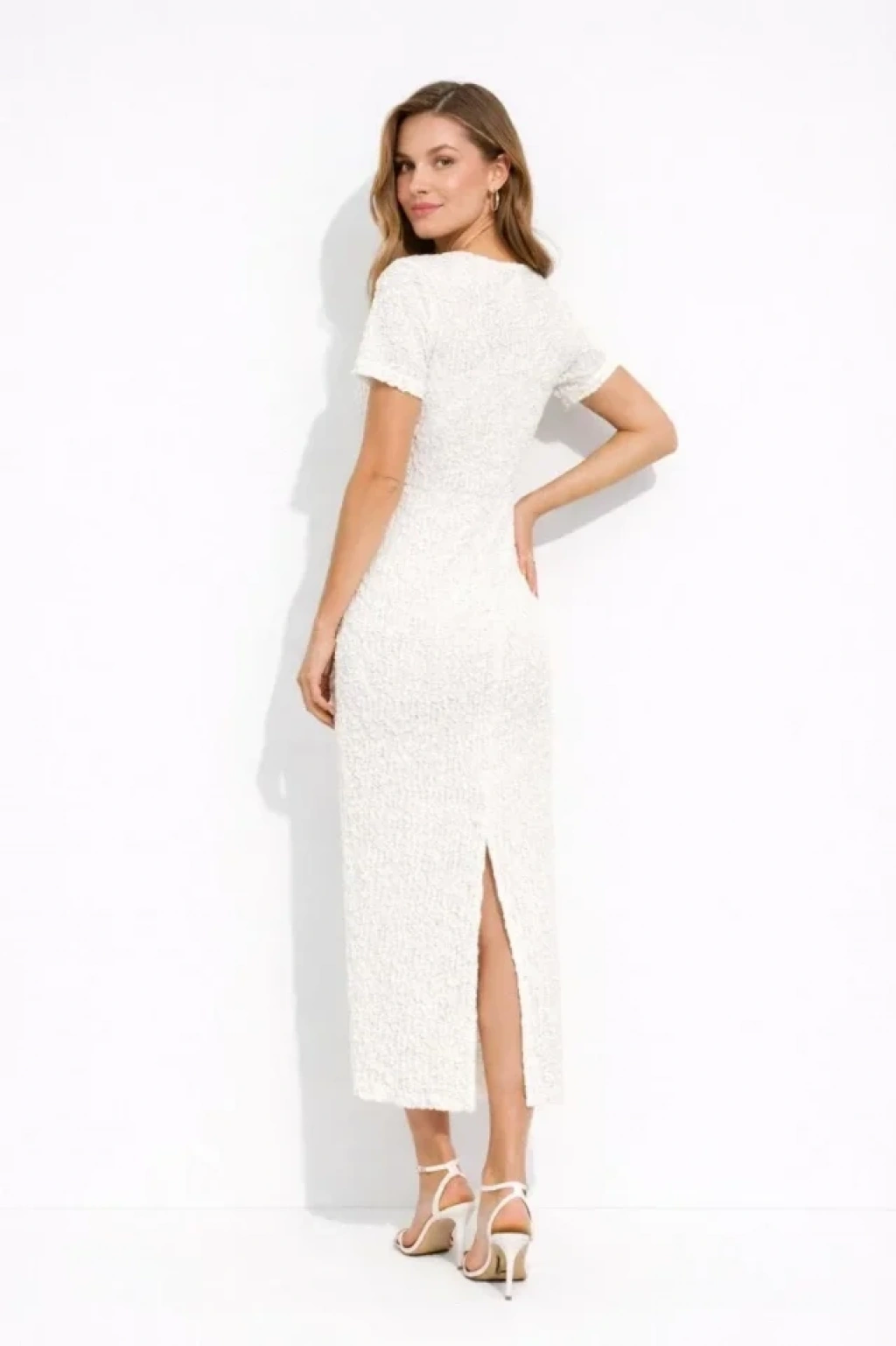 Beyaz Kısa Kollu Arkası Yırtmaçlı Uzun Elbise + İç Göstermeyen Askılı Mini Elbiseli - Beyaz