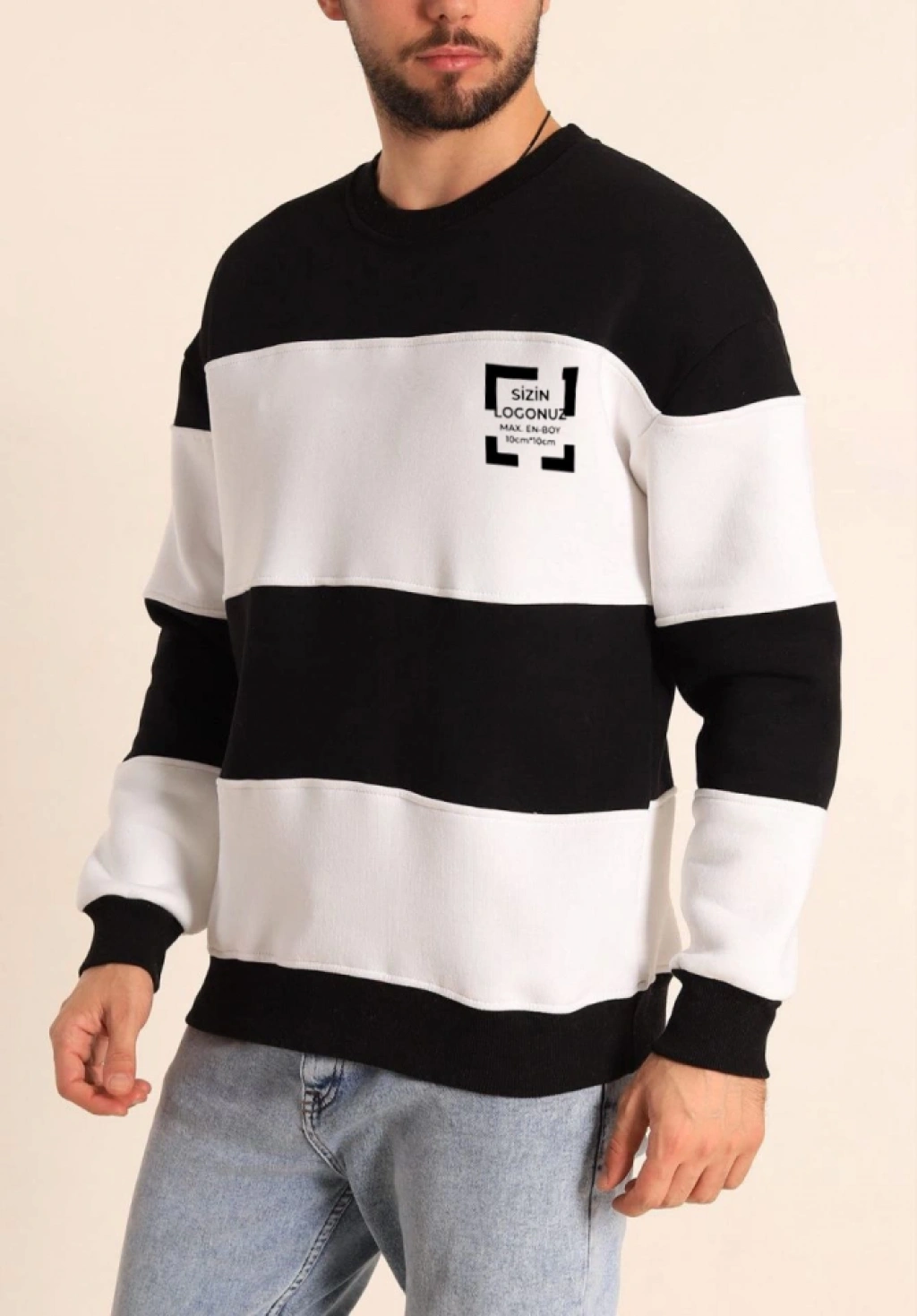 Bisiklet Yaka Parçalı Özel Üretim weatshirt iyah