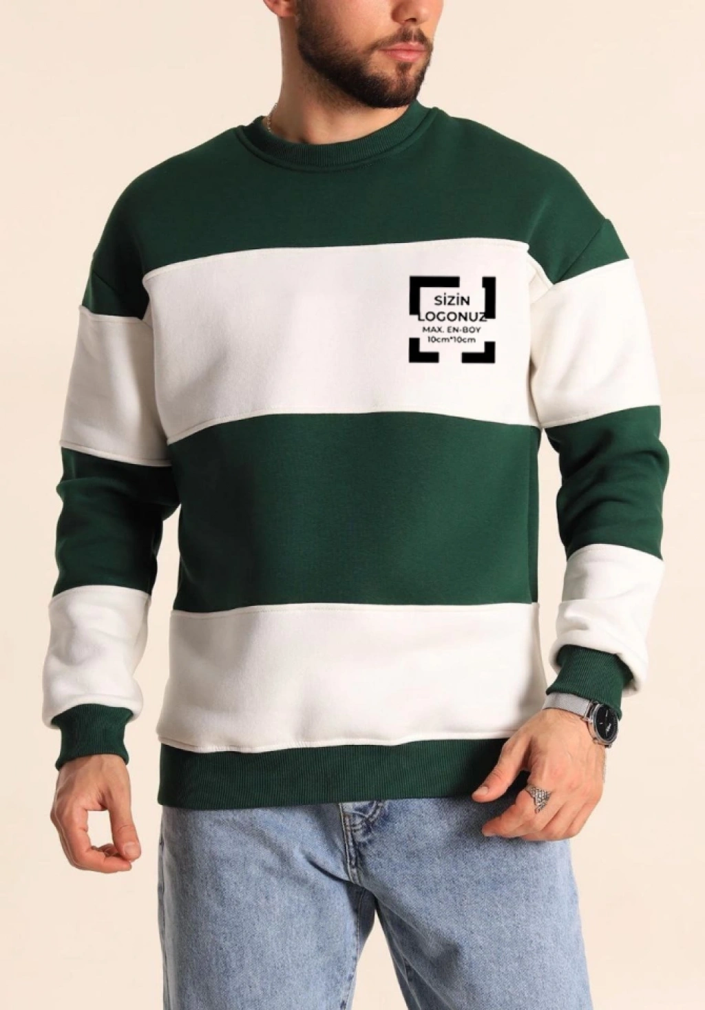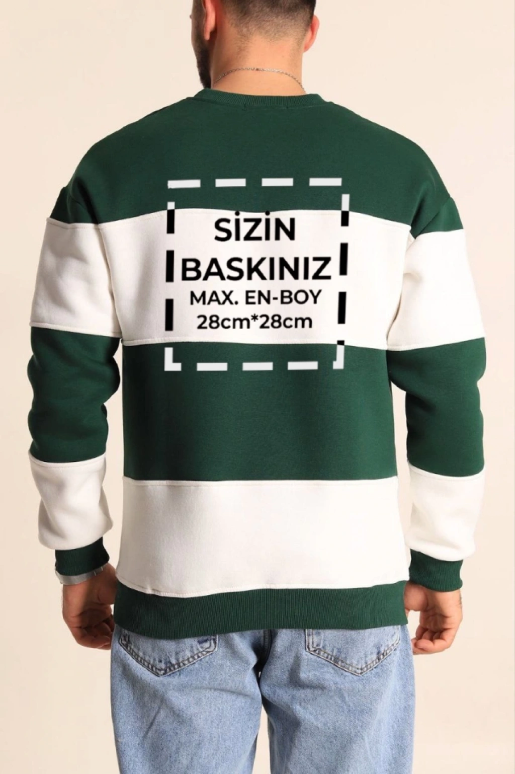 Bisiklet Yaka Parçalı Özel Üretim weatshirt Yeşil
