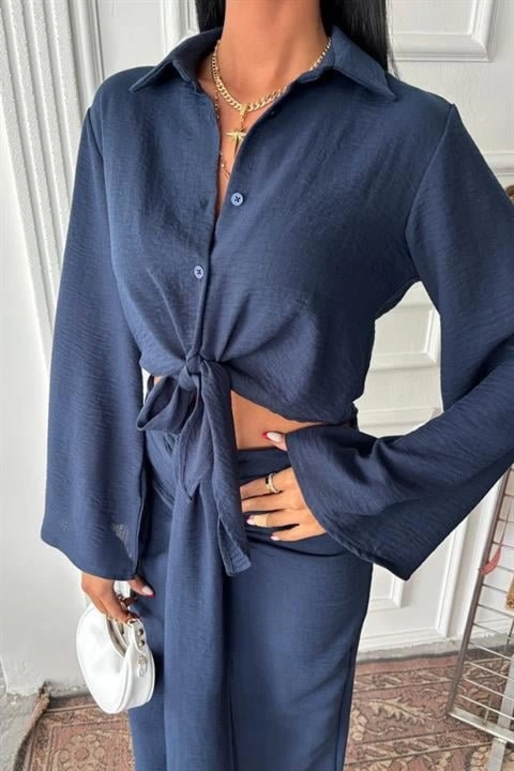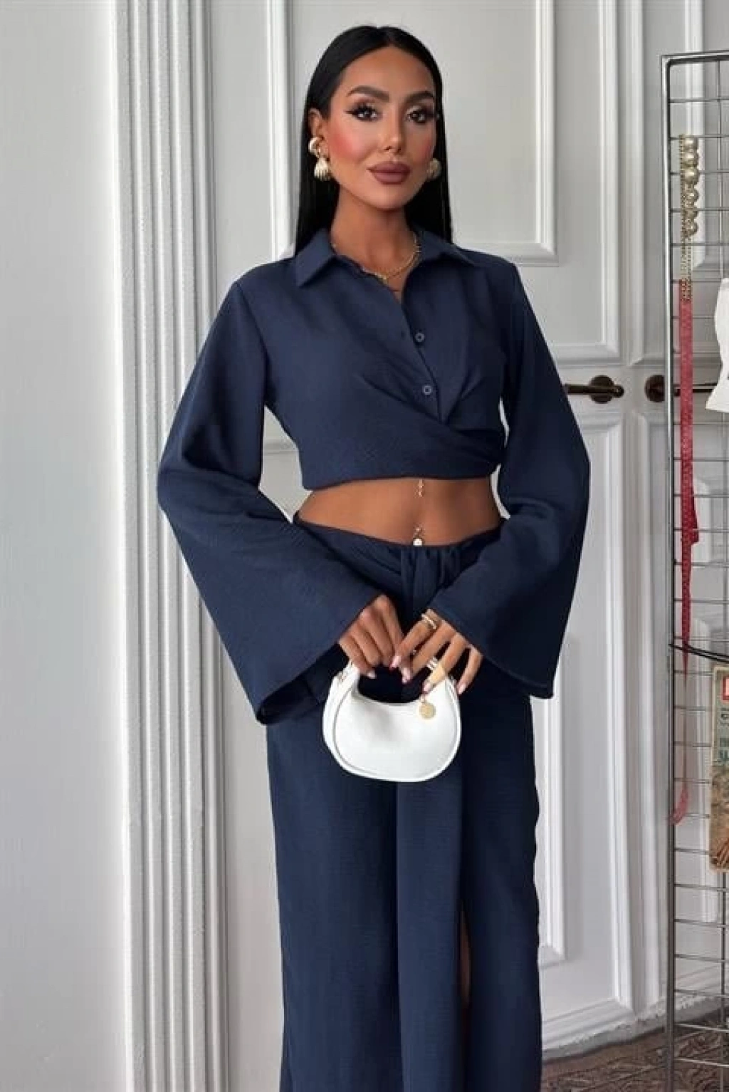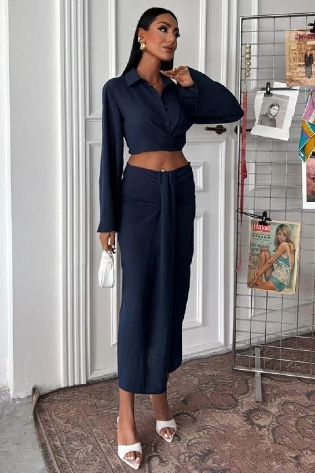 Crop Gömlekli Ve Eteği Büzgülü Tasarım Takım 10195