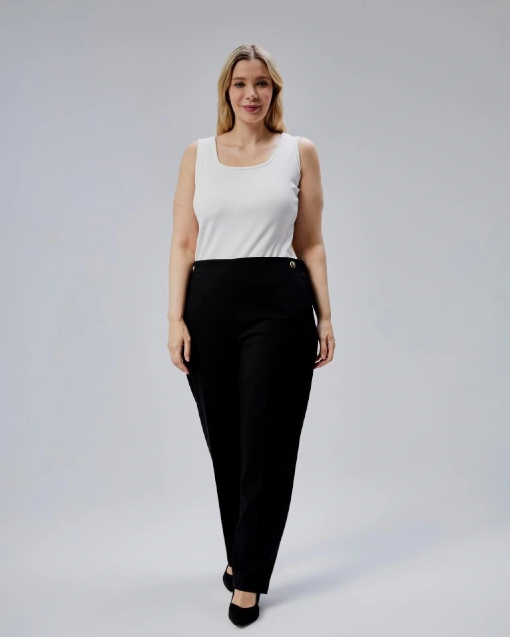 Dekorati̇f Düğmeli̇ Arka Bel Lasti̇kli̇ Büyük Beden Pantolon