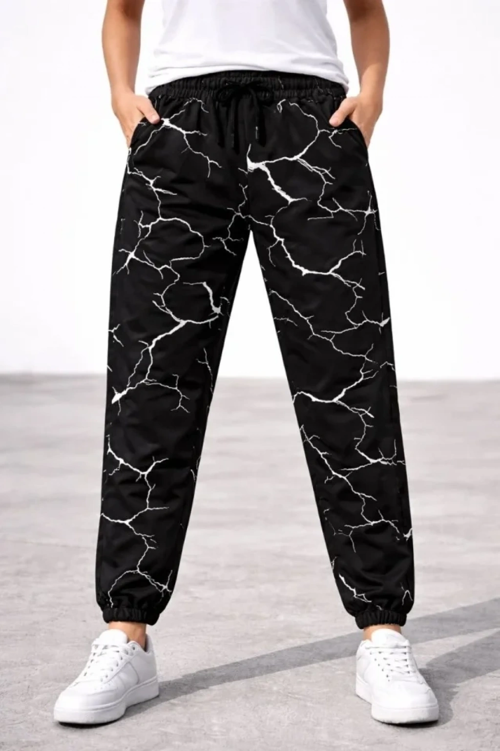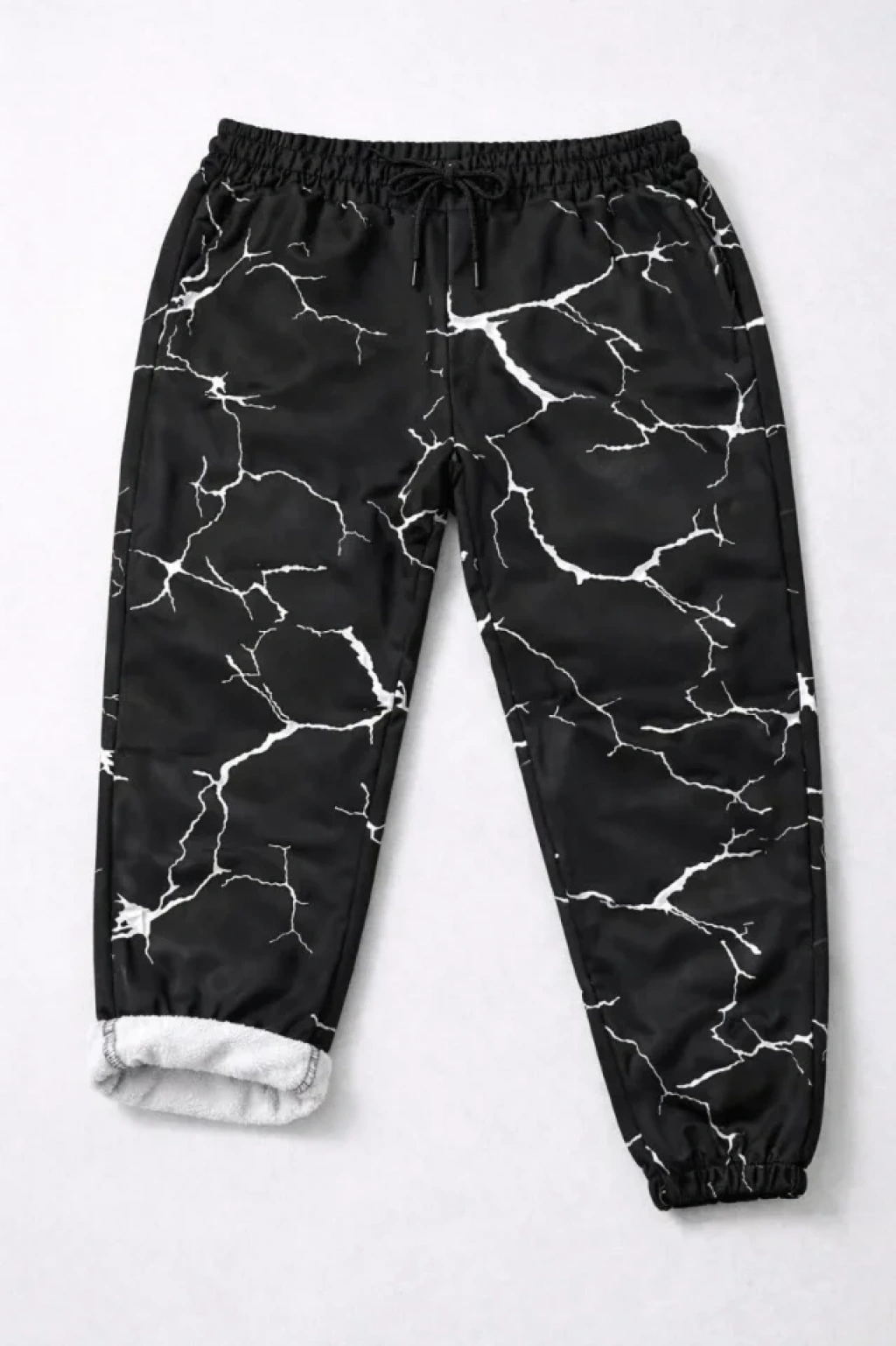 Dijital Baskılı Eşofman Altı Kışlık Üç İplik Şardonlu Kumaş Lastikli Paça, Cepli, Rahat Kalıp - Siyah