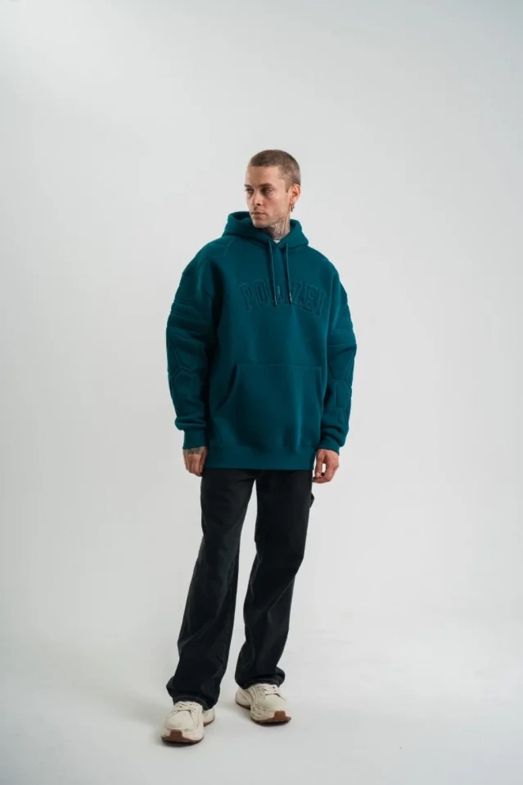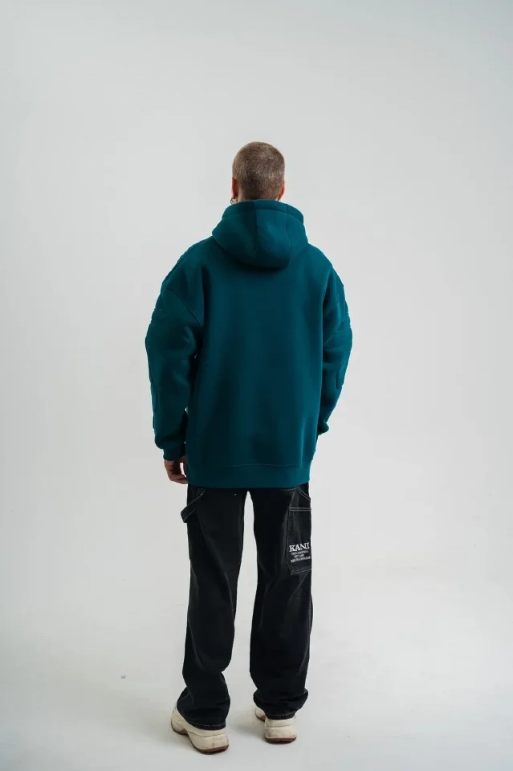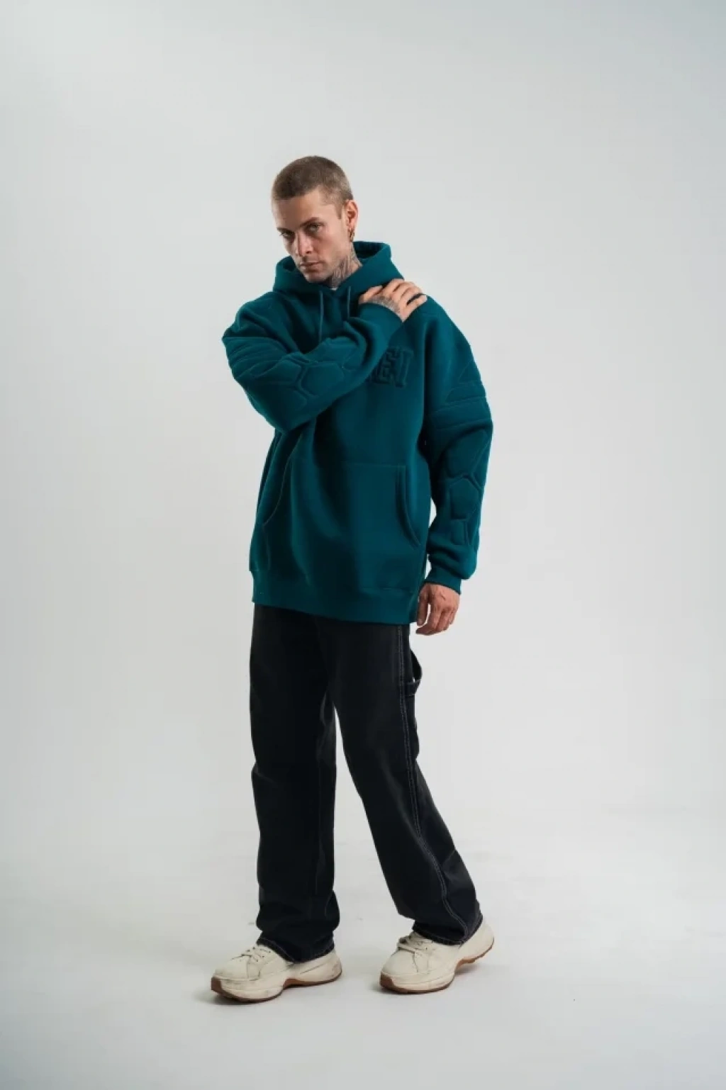 Double Oversize Kapşonlu Nakışlı weathirt Koyu Deniz Yeşili
