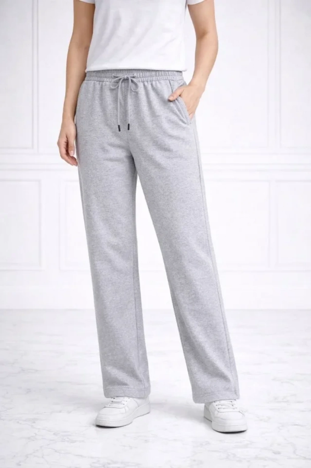 Düz Paça Beli astikli İpli Günlük por Eşofman Altı Rahat Fit Gri