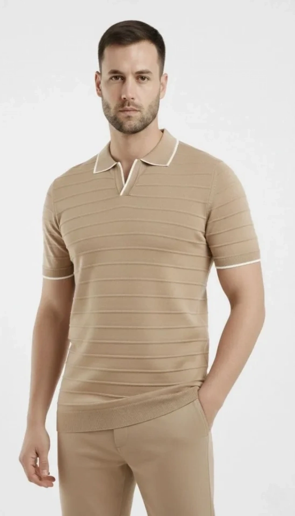 Erkek 3’lü Paket Triko Yakalı Düğmesiz Açık Yaka Fitilli Kısa Kollu Regular Fit Tişört - Lacivert, Bej, Siyah