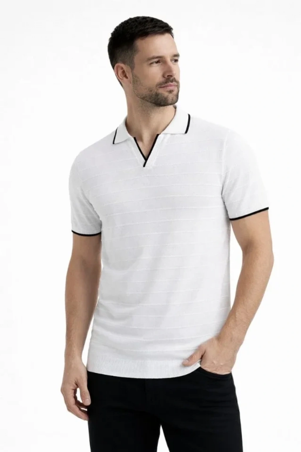 Erkek 3’lü Paket Triko Yakalı Düğmesiz Açık Yaka Fitilli Kısa Kollu Regular Fit Tişört - Bej, Beyaz, Mint Yeşili