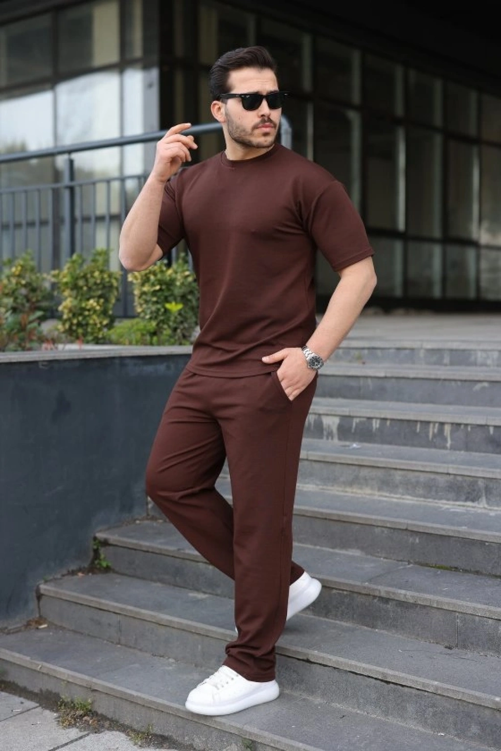 Erkek Kısa Kollu Bisiklet Yaka Baskılı Tişört Ipli Short Iki Iplik Takım