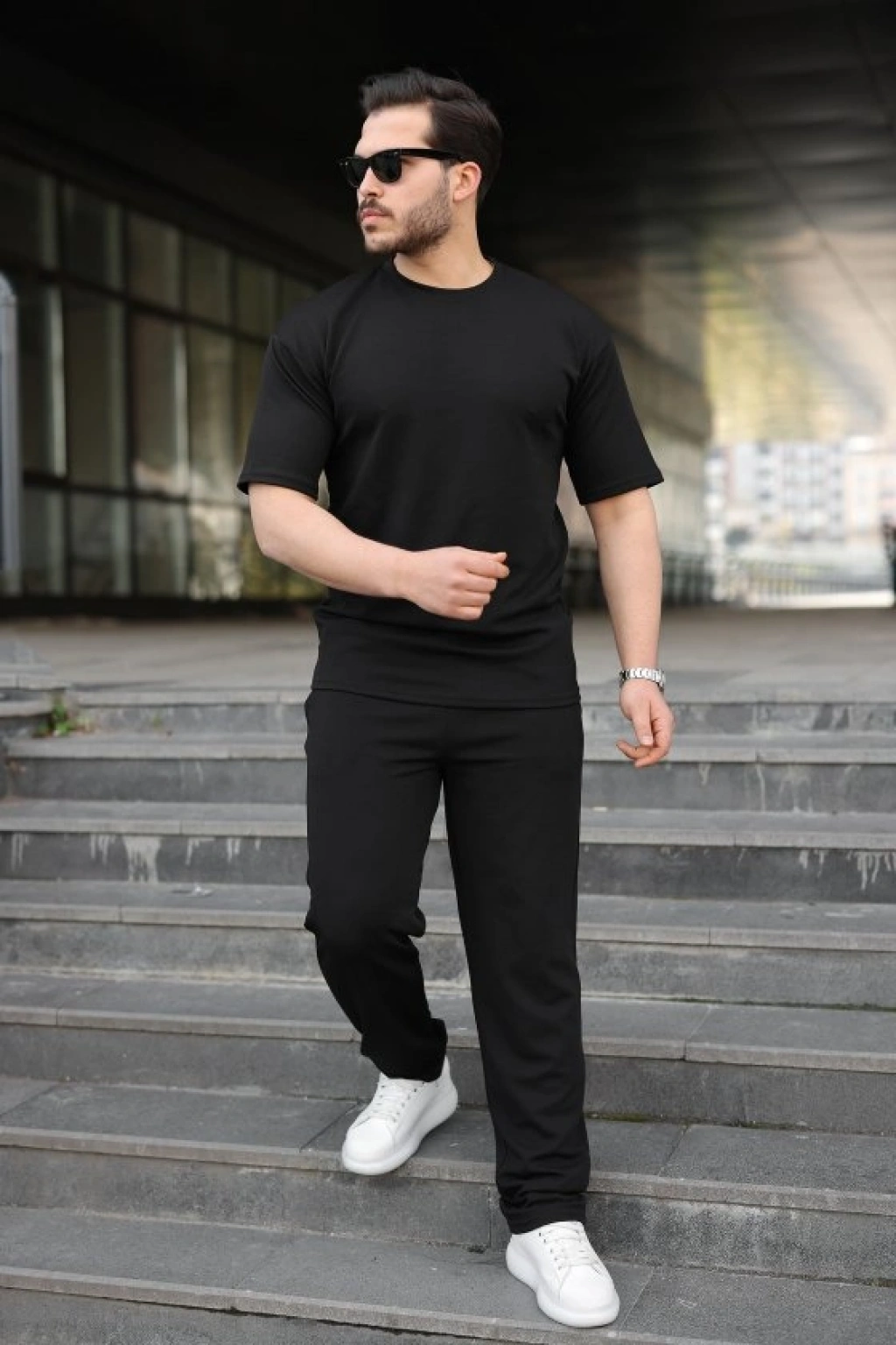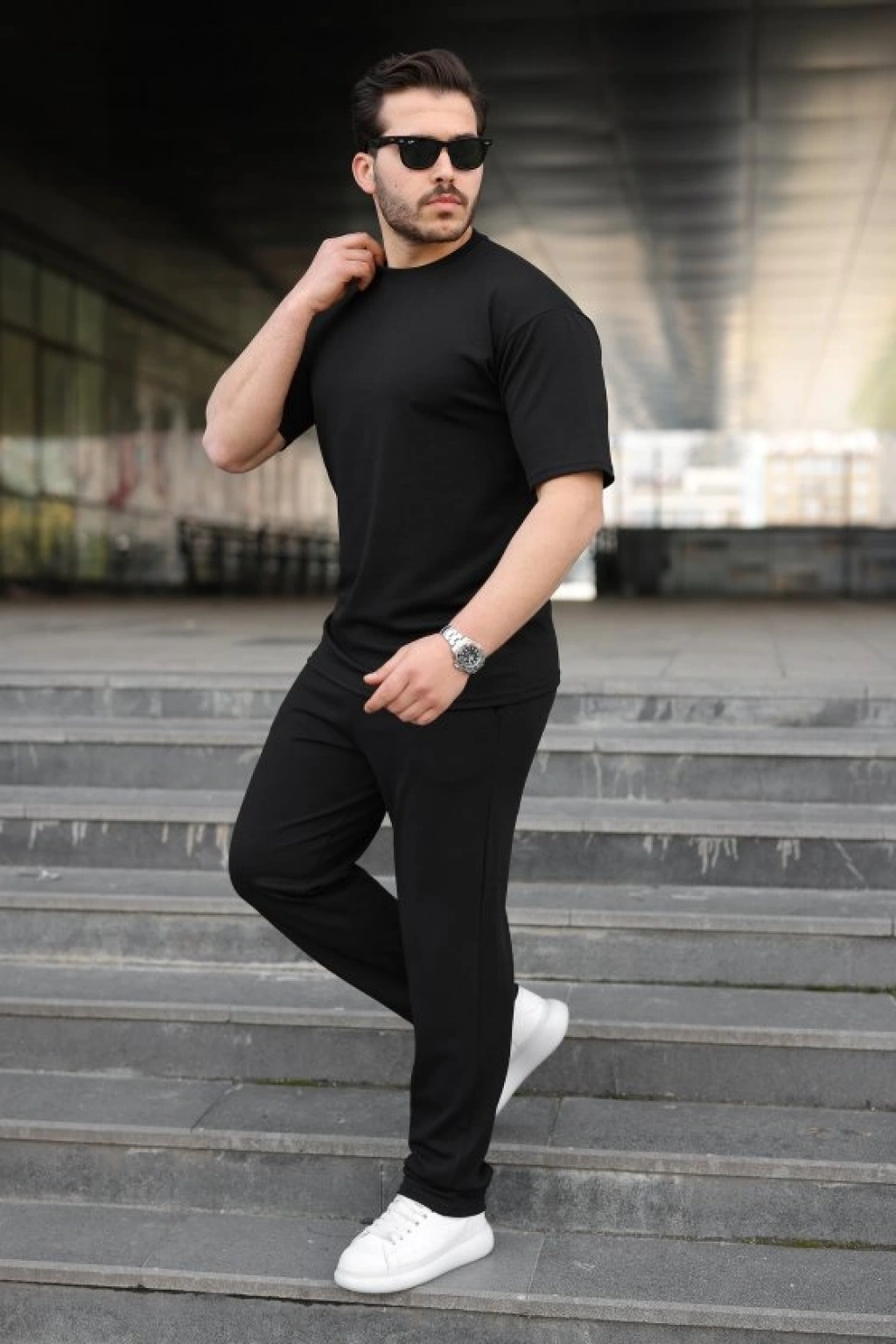Erkek Kısa Kollu Bisiklet Yaka Baskılı Tişört Ipli Short Iki Iplik Takım