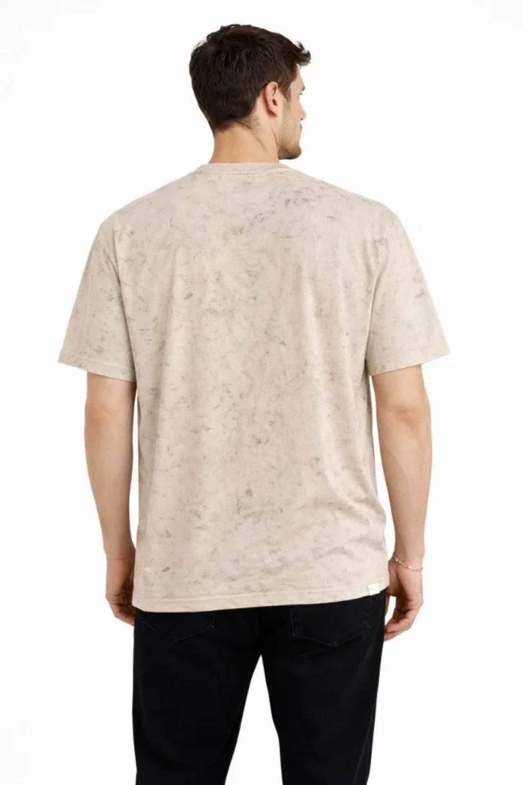 Erkek Asit Yıkama Bisiklet Yaka Kısa Kollu Oversize Thirt Tişört Bej