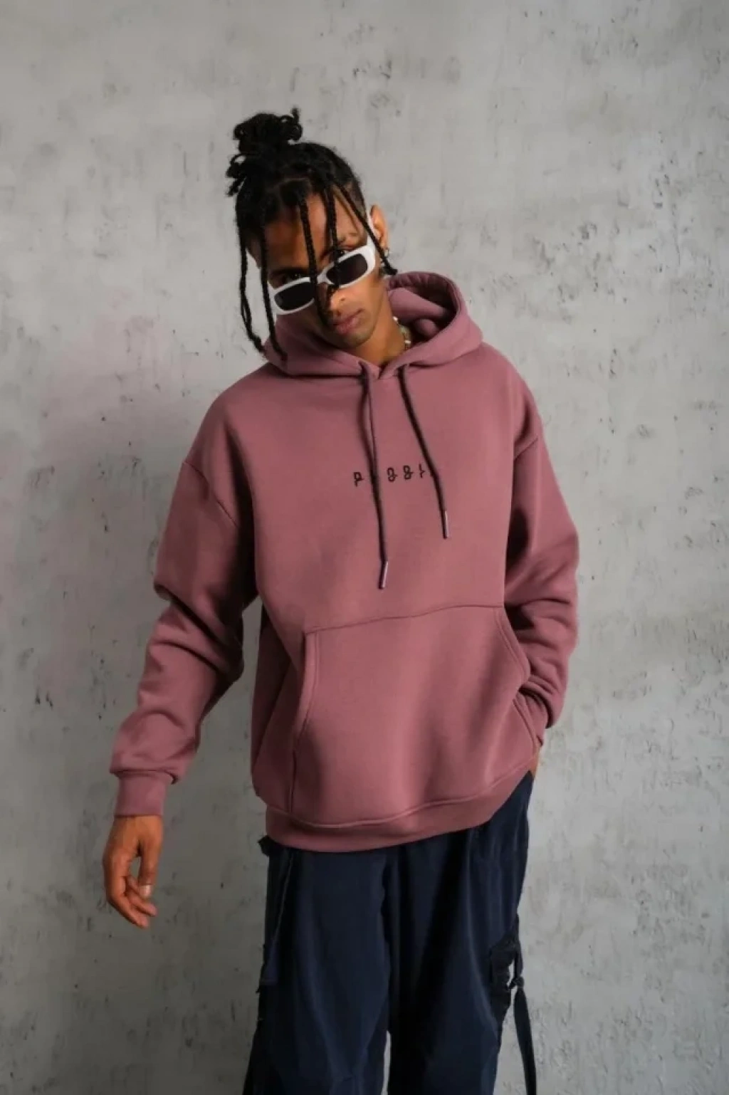 Erkek Astronot Baskılı Kapüşonlu Sweat - Gül Kurusu