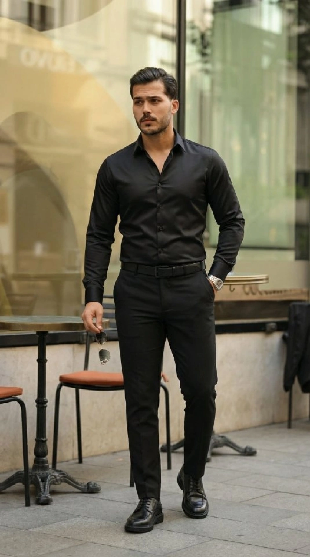 Erkek Waffle Dokuma Açık Yakalı Düğmeli Regular Kalıp 2’li Gömlek eti iyah aks avisi