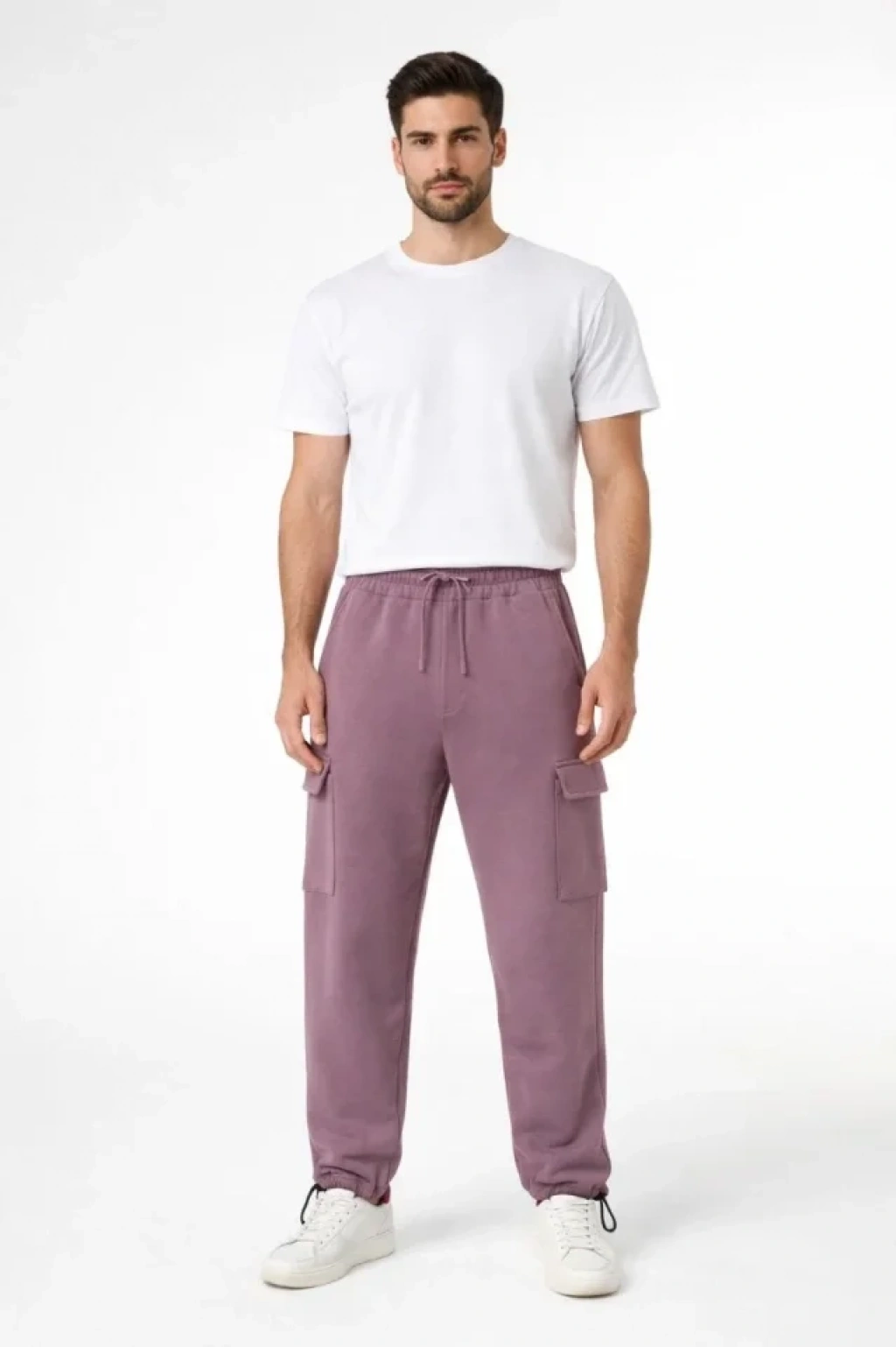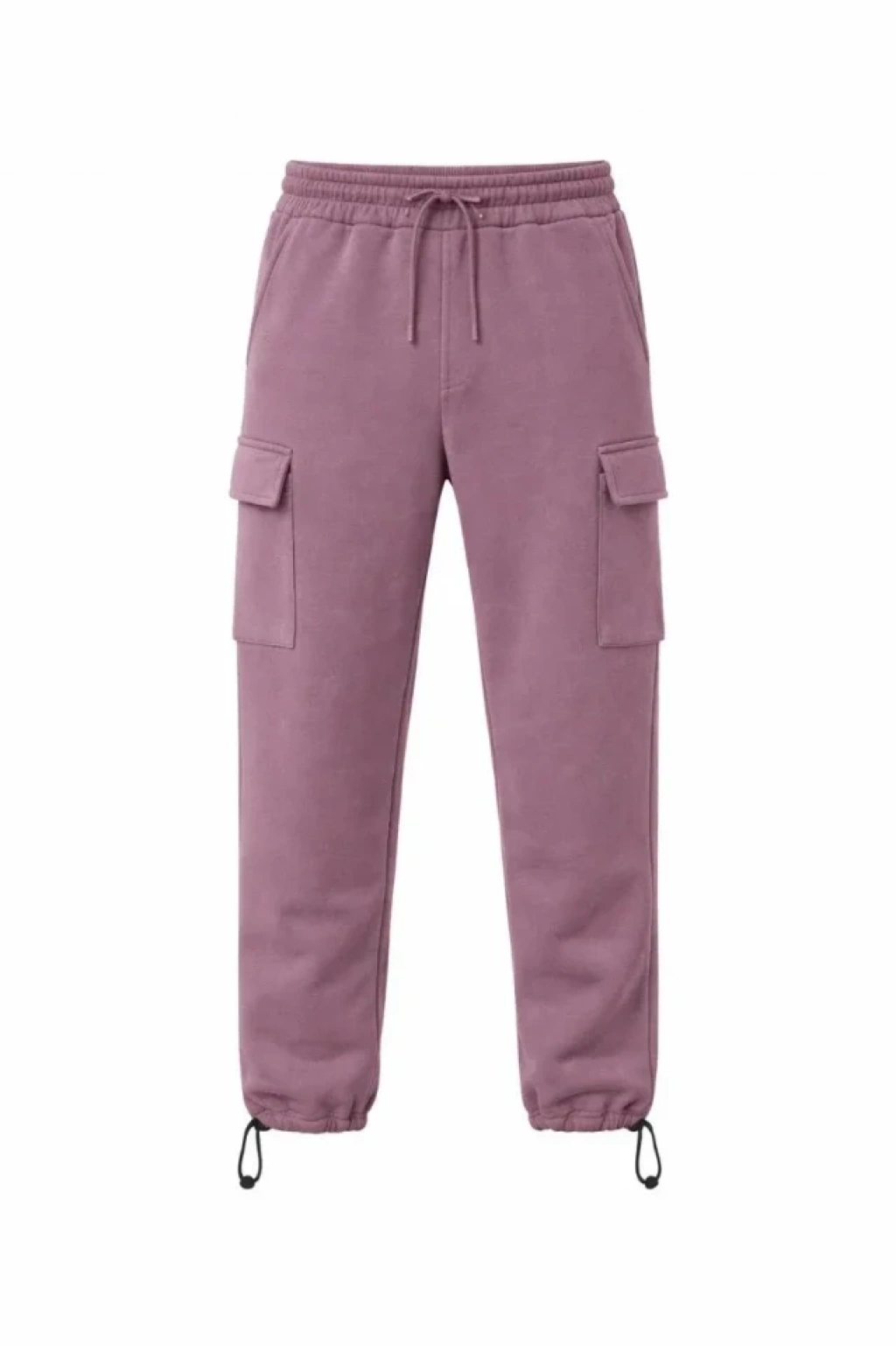 Erkek Baggy Üç İplik Kargo Cepli Eşofman Ayarlanabilir Paça Beli İpli Pantolon - Gül Kurusu