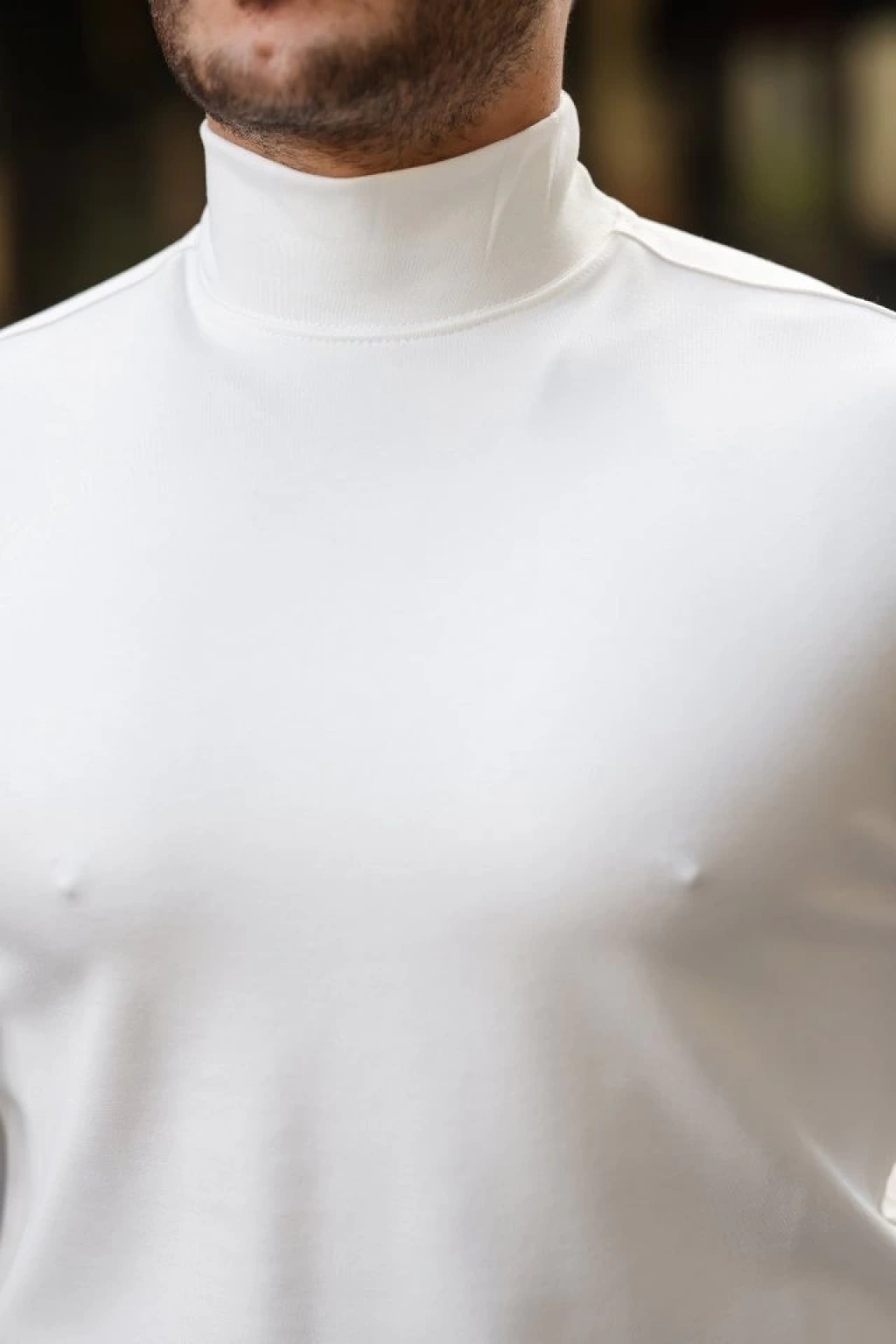 Erkek Yarım Boğaz Triko Kazak Yumuşak Dokulu Pamuklu Ince Dokuma, Uzun Kollu Rahat Regular Kalıp Bej