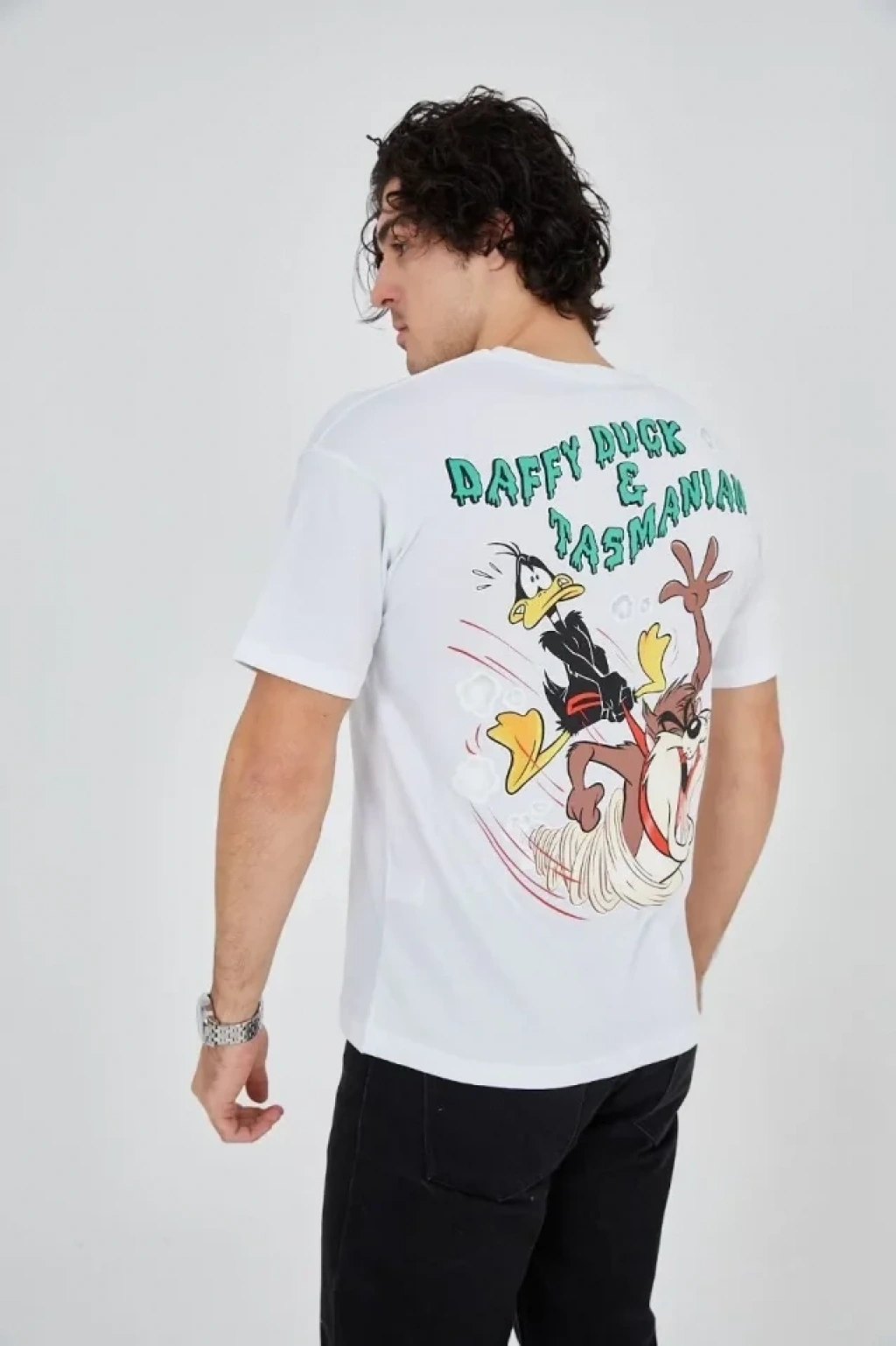 Erkek Baskılı 24/1 Penye T-Shirt - Beyaz