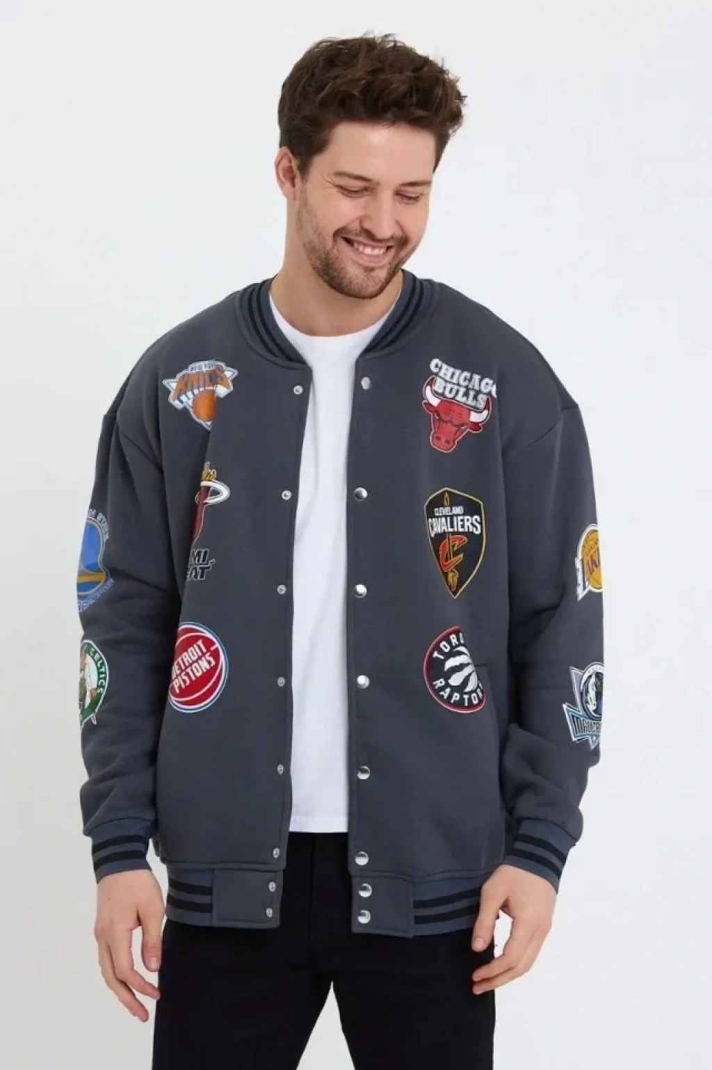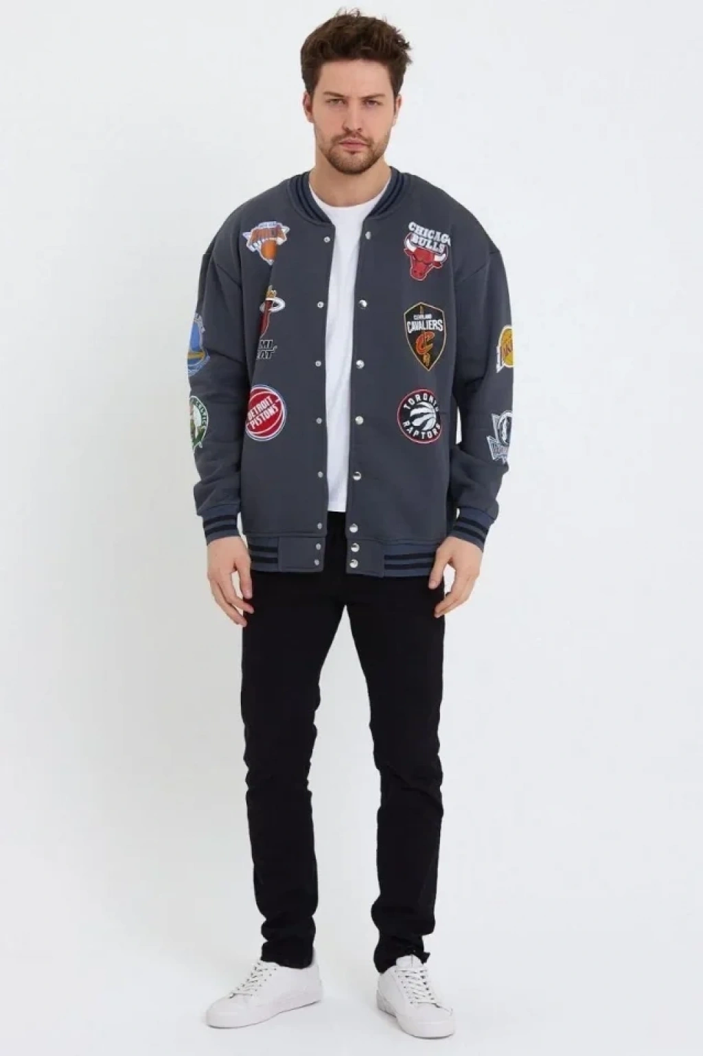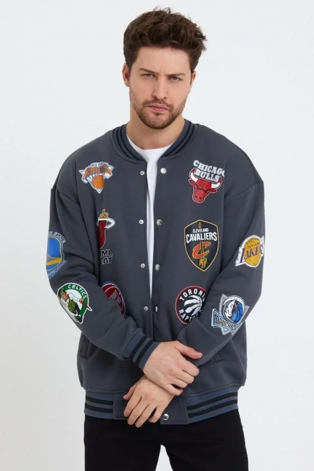 Unisex Uzun Kol Baskılı Bomber Ceket iyah