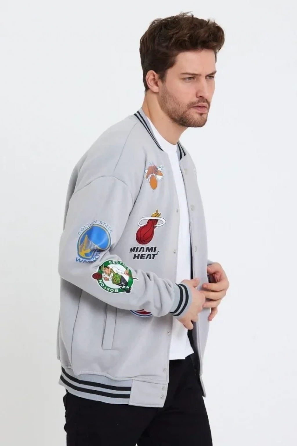 Kolları uni Deri Içi Astarlı Oduncu Kolej Içi Ceket Gri