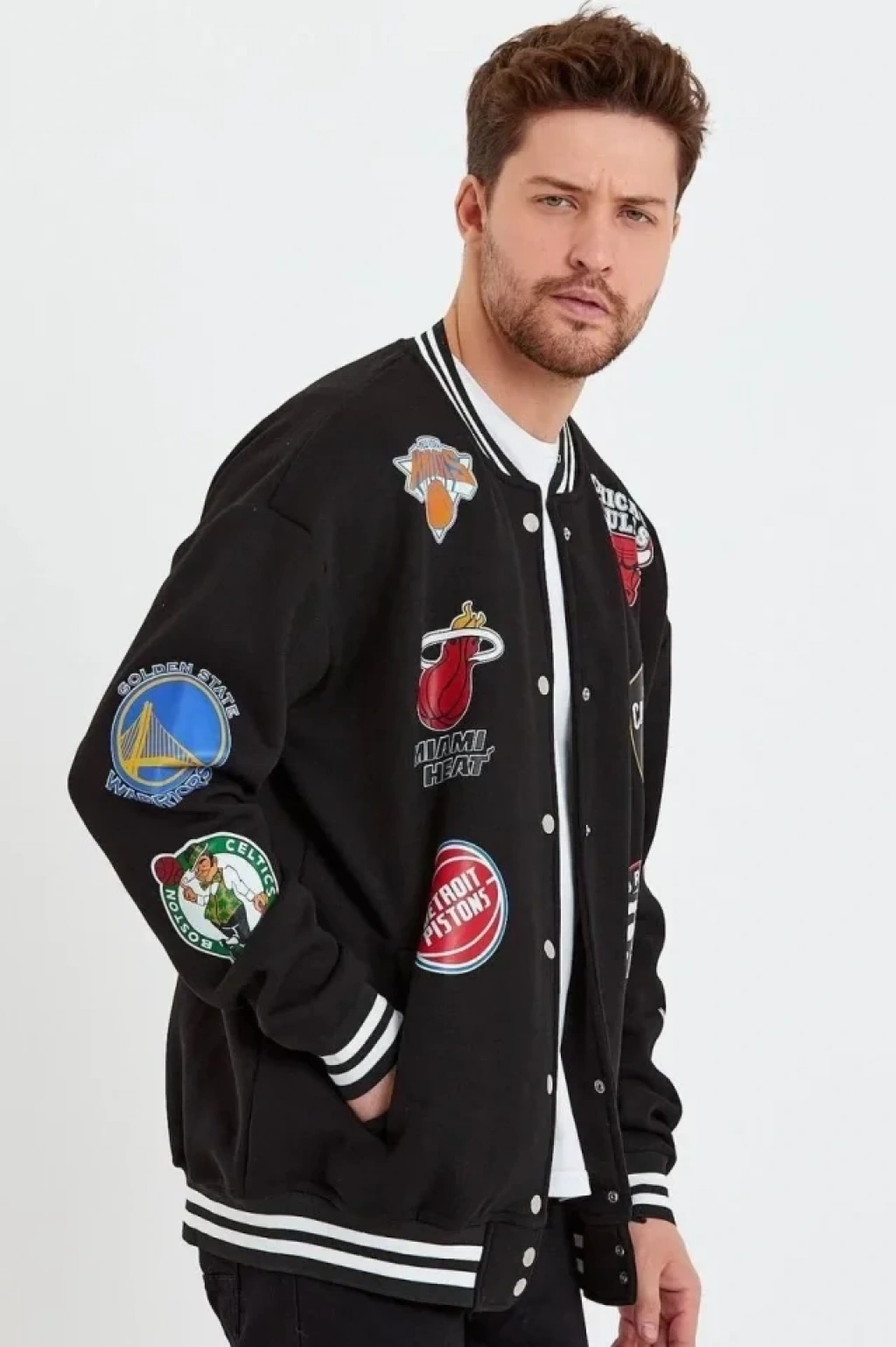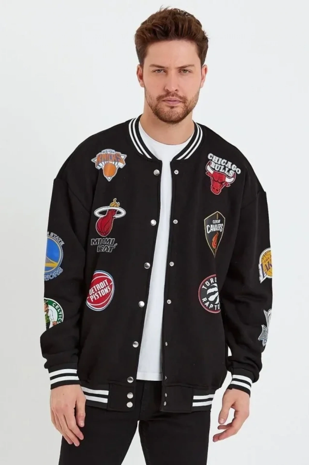 Unisex Uzun Kol Baskılı Bomber Ceket iyah