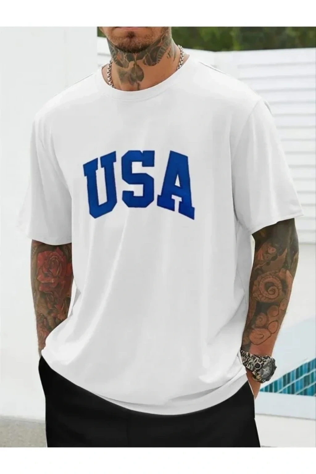 Erkek Baskılı Oversize Tshirt Beyaz