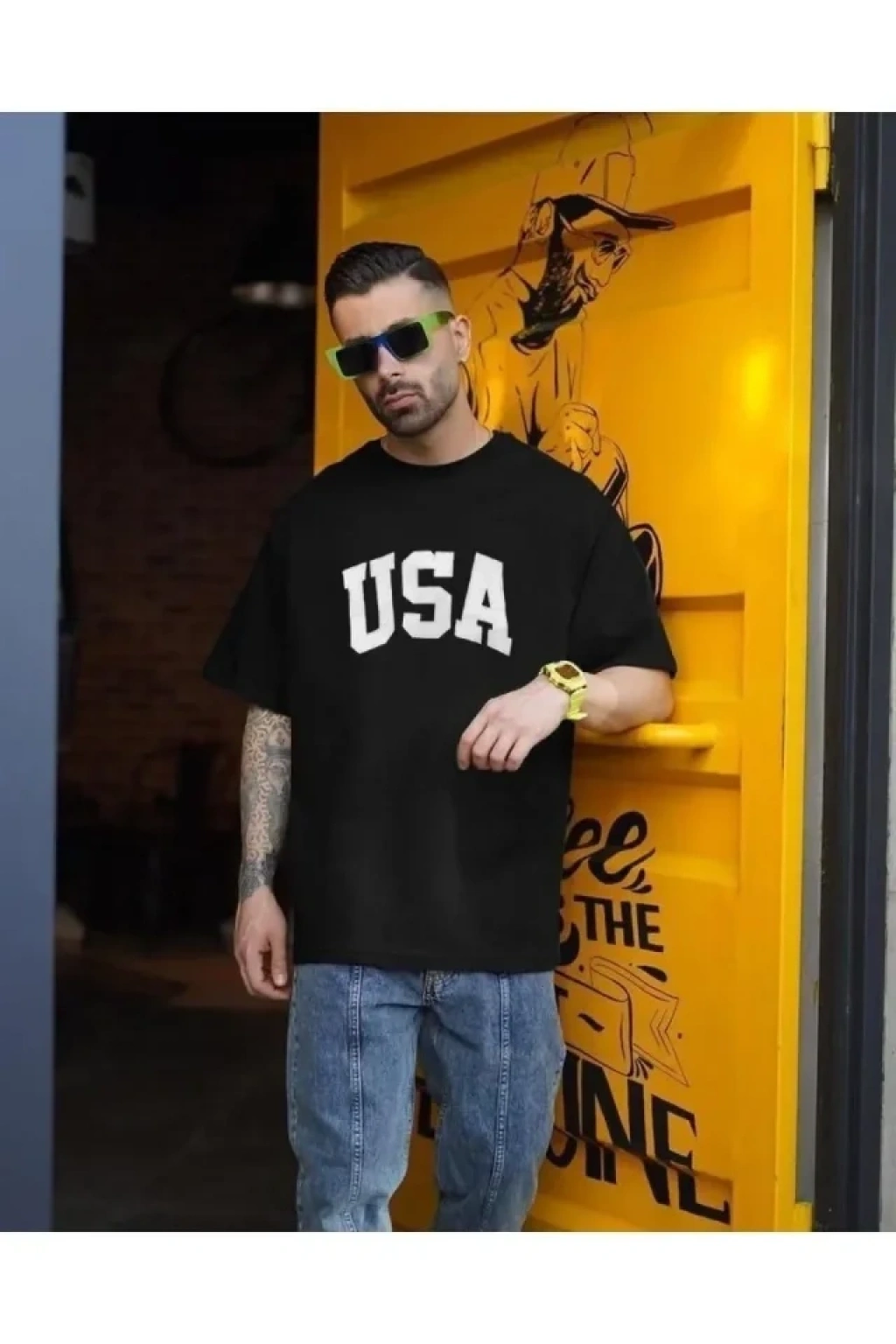 Erkek Asit Yıkama Bisiklet Yaka Kısa Kollu Oversize Thirt Tişört iyah
