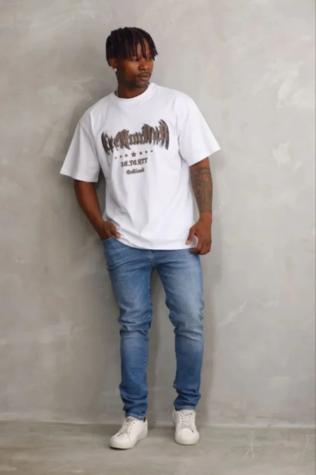 Erkek Baskılı Thirt Kısa Kol Bisiklet Yaka Regular Fit Rahat Kalıp Günlük Tişört Beyaz