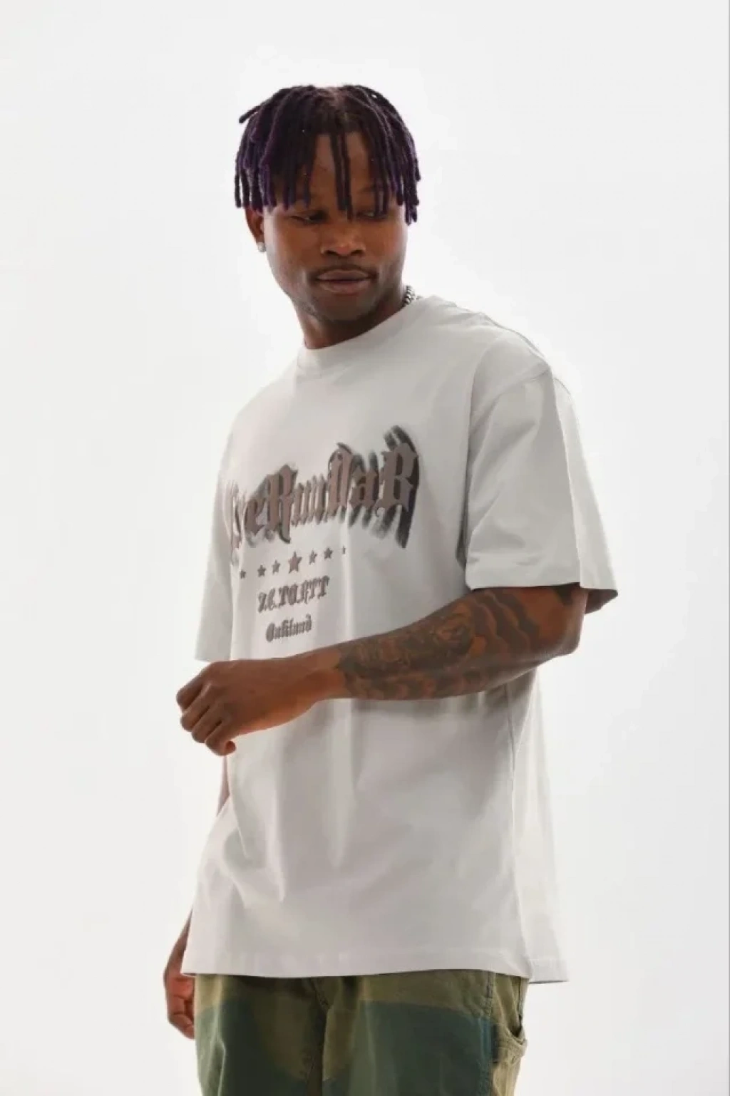 Erkek Baskılı Thirt Kısa Kol Bisiklet Yaka Regular Fit Rahat Kalıp Günlük Tişört Gri