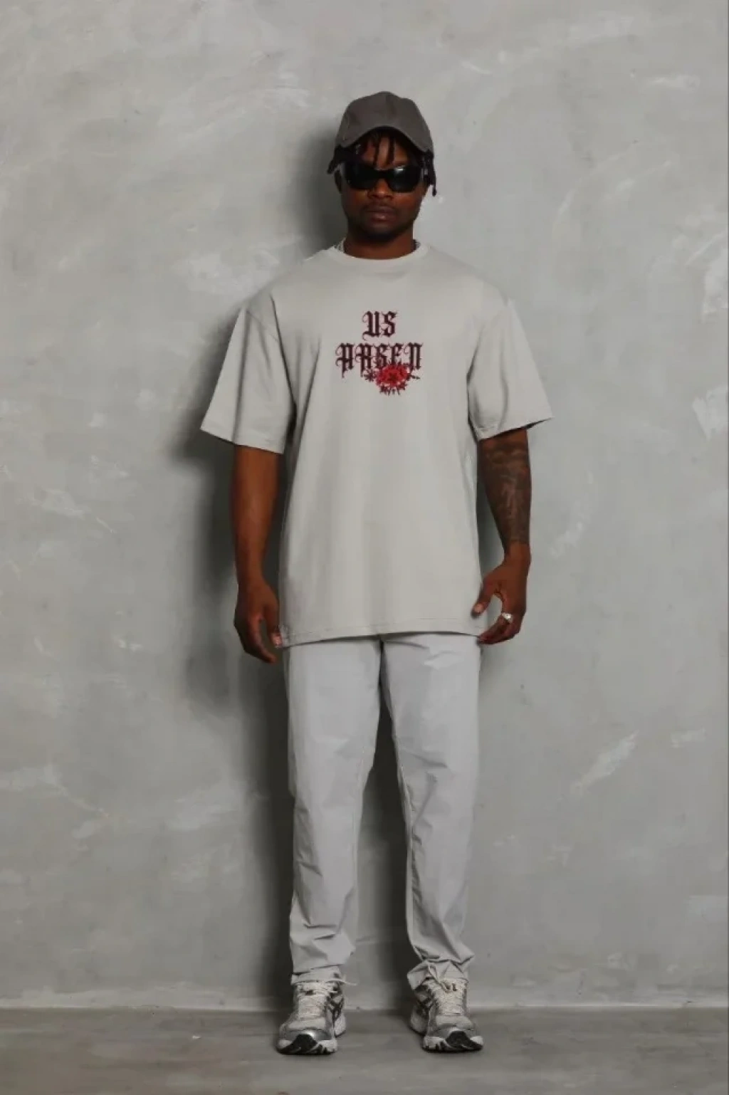 Erkek Baskılı Thirt Kısa Kol Bisiklet Yaka Regular Fit Rahat Kalıp Günlük Tişört Gri