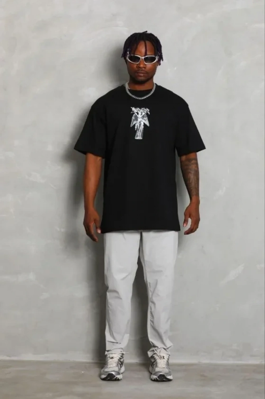 Erkek Baskılı Thirt Kısa Kol Bisiklet Yaka Regular Fit Rahat Kalıp Günlük Tişört iyah
