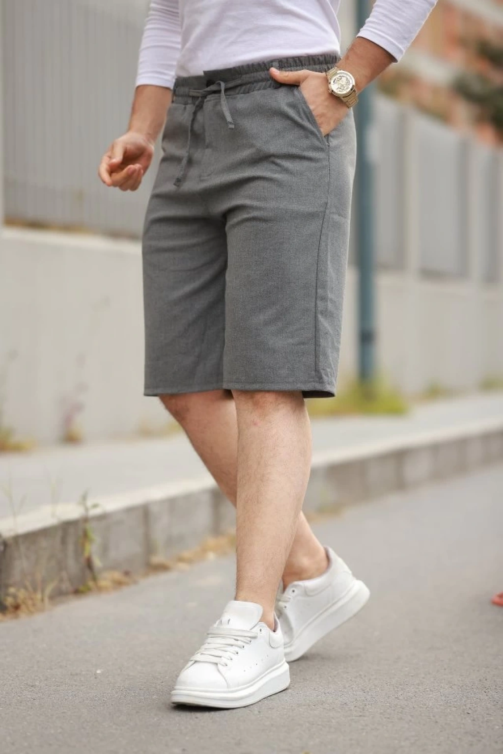 Erkek Beli Bağcıklı Ve Düğmeli Bezayağı Kumaş şort