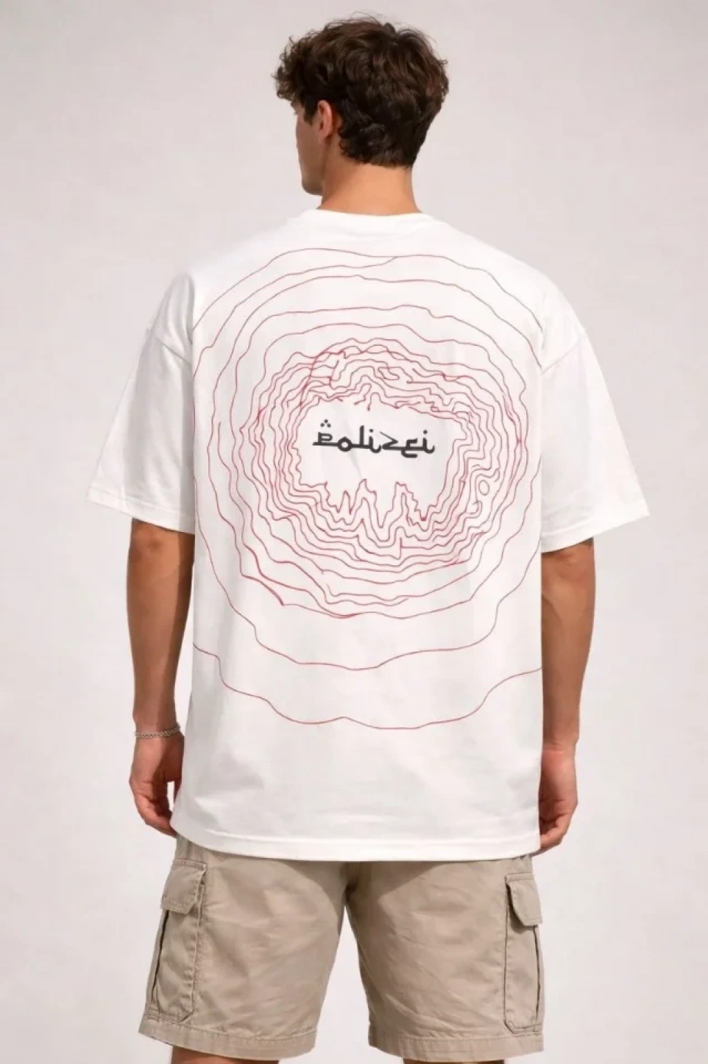 Erkek Bisiklet Yaka Baskılı Kısa Kollu Tişört treetwear Günlük Basic Pamuklu Tshirt Beyaz