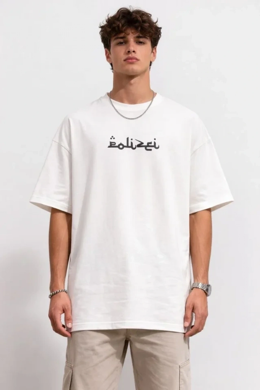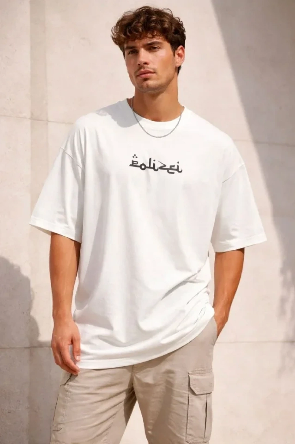 Erkek Bisiklet Yaka Baskılı Kısa Kollu Tişört Streetwear Günlük Basic Pamuklu T-shirt - Beyaz