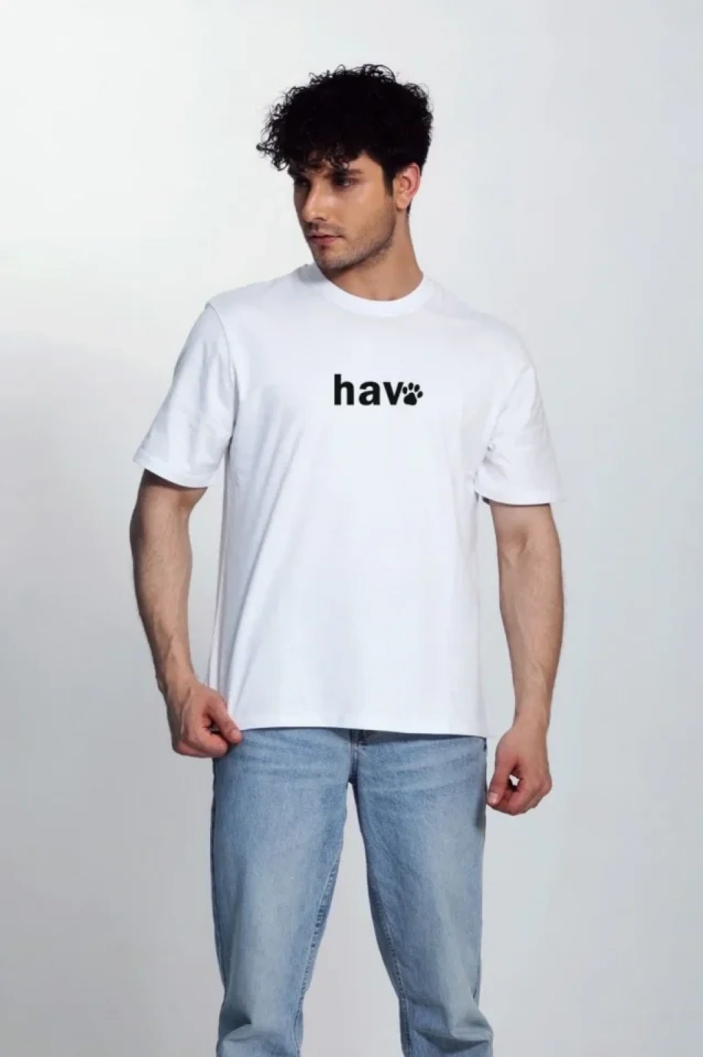 Erkek Bisiklet Yaka Kısa Kol Hav Baskılı Tshirt Beyaz