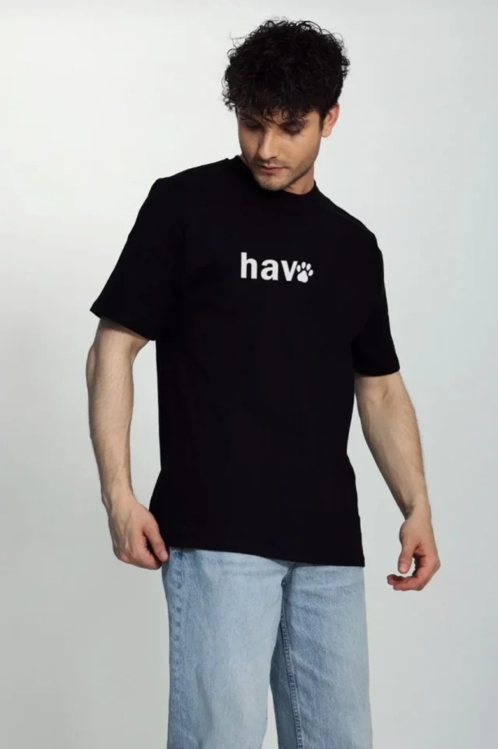 Erkek Bisiklet Yaka Kısa Kol Hav Baskılı Tshirt iyah