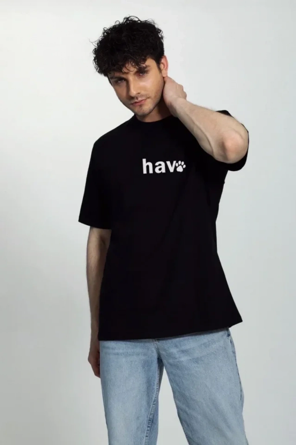 Erkek ırt Baskılı Oversize Tshirt Bej