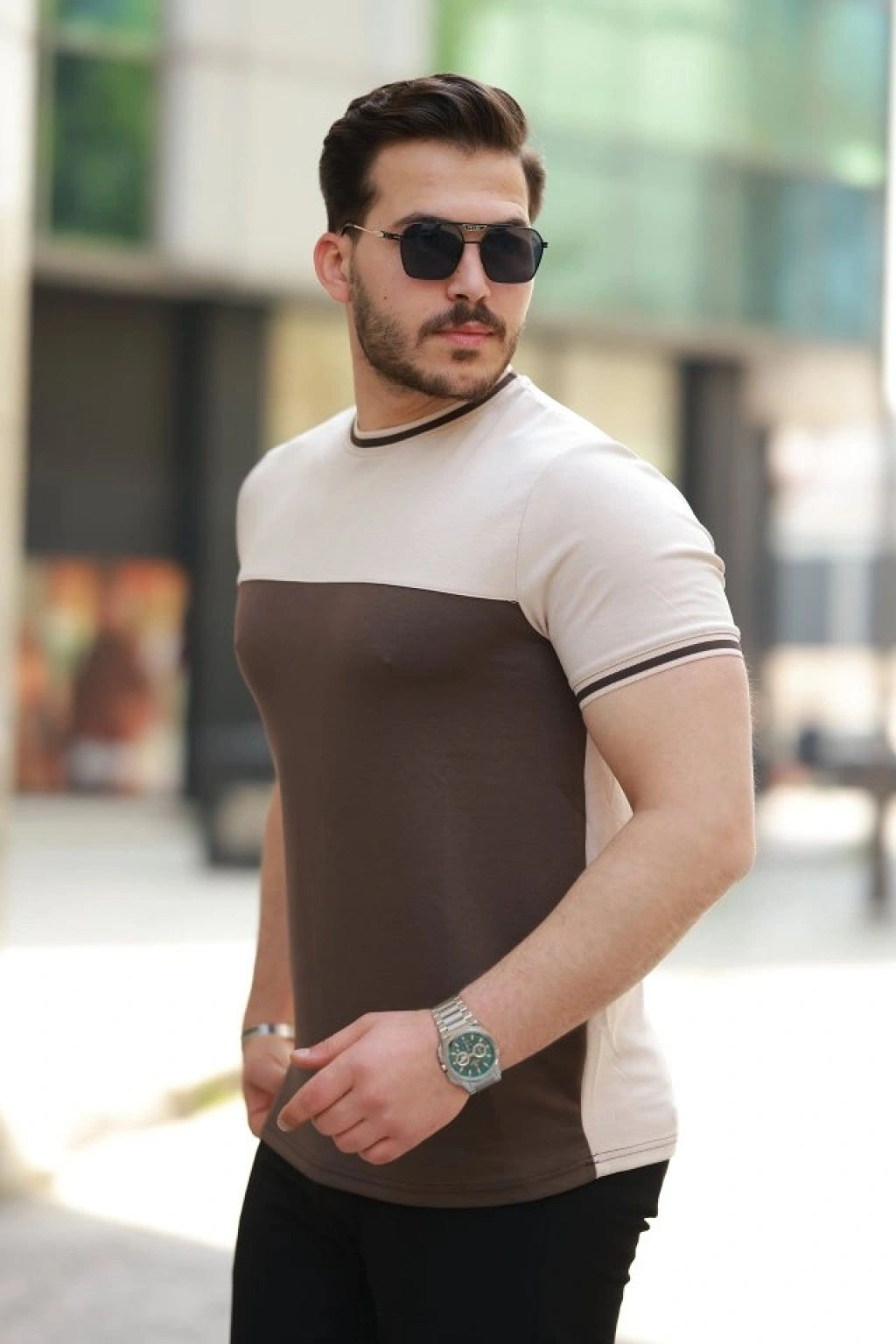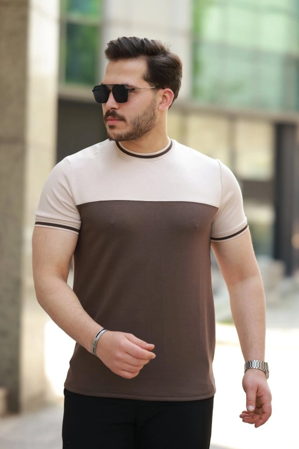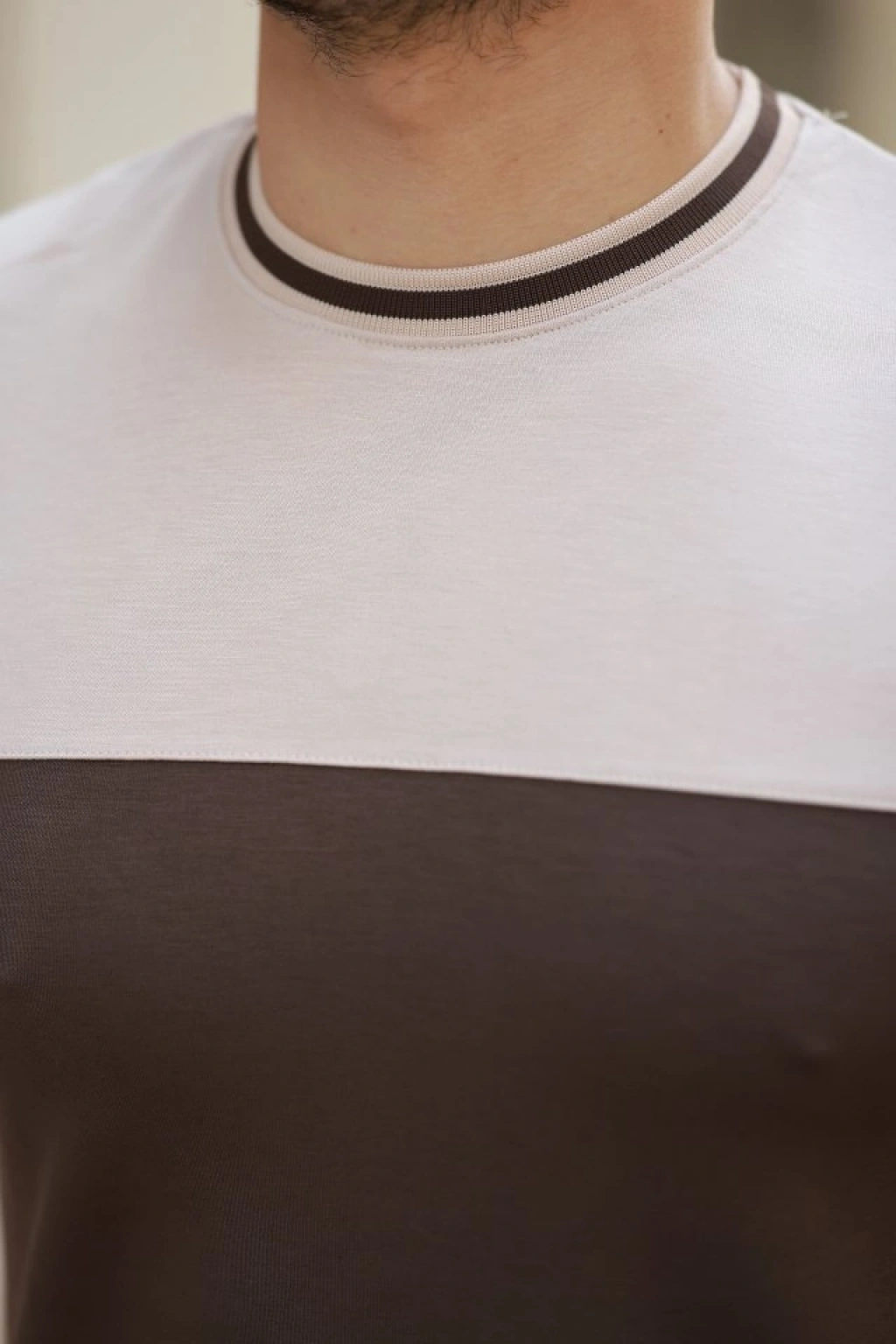 Erkek Bisiklet Yaka Parçalı Renk Kısa Kollu Tshirt