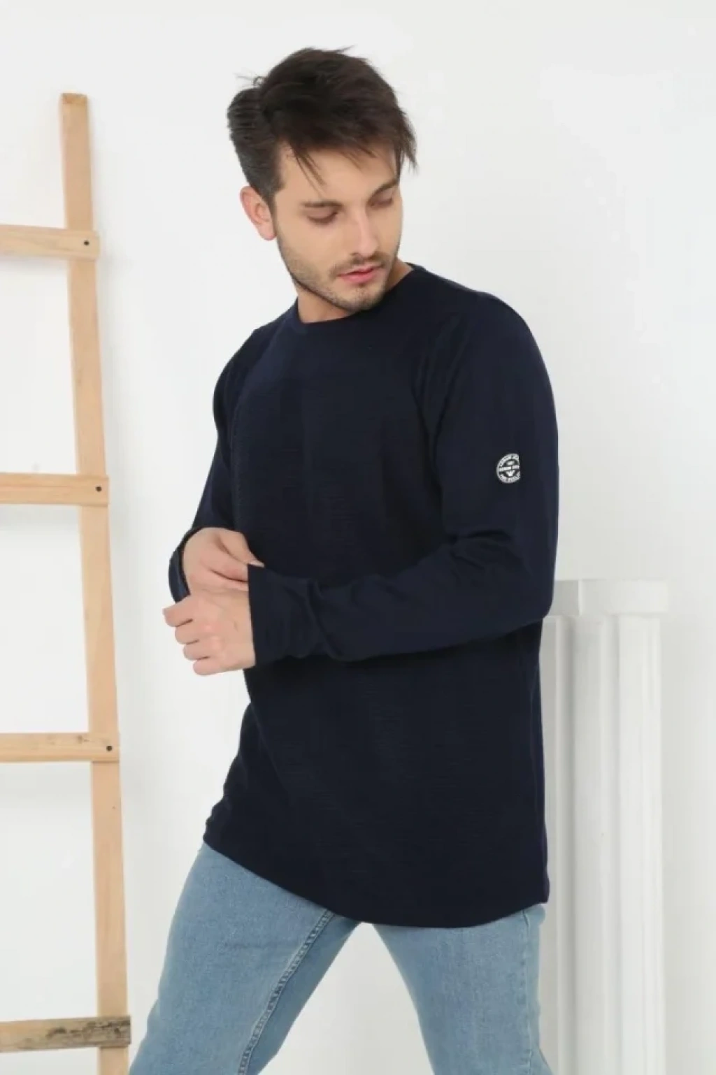 Erkek Biskilet Yaka Kolu Armalı - Lacivert
