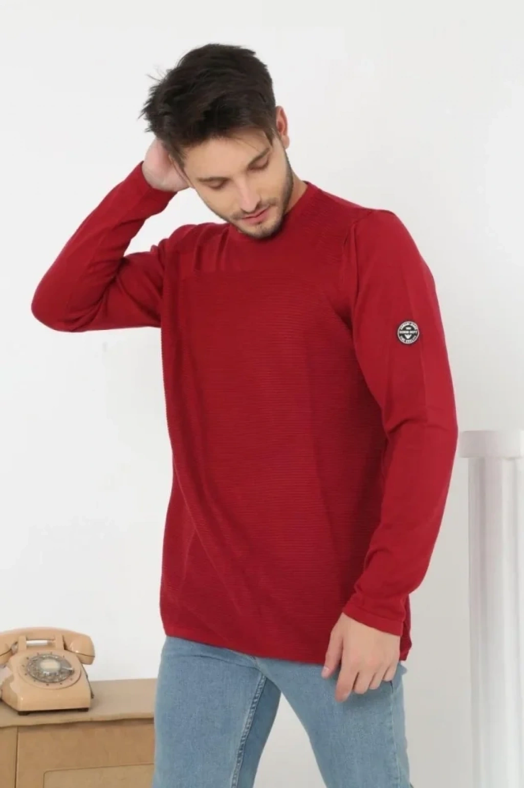 Erkek Biskilet Yaka Kolu Armalı Kırmızı