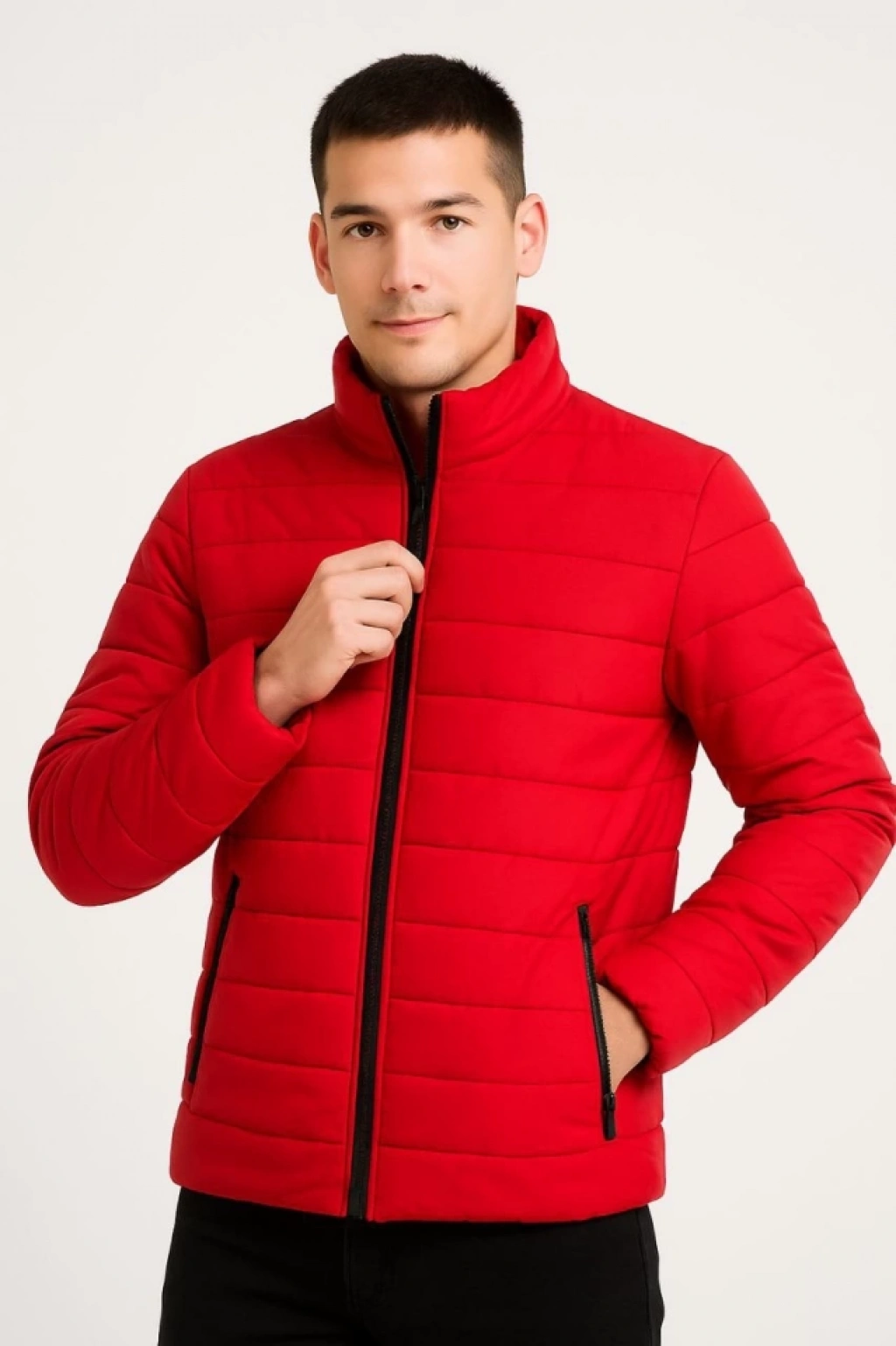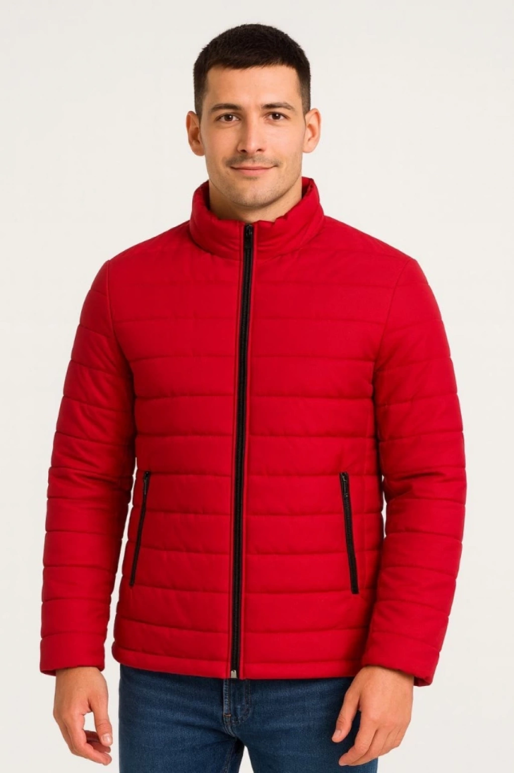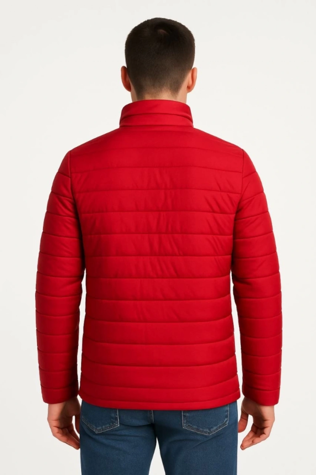 Erkek Bomber ont Ceket – u İtici Kumaş, Kapitone Astarlı, Fermuarlı, Kışlık Kırmızı