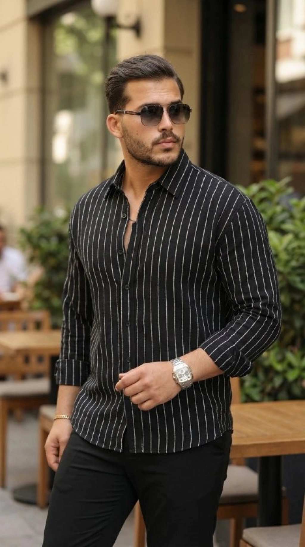 Erkek Çizgili Keten Gömlek