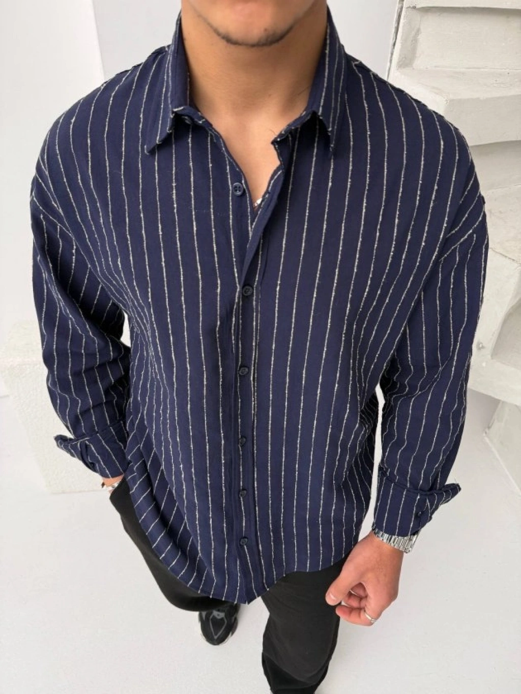 Erkek KETEN Kumaş Oversize Uzun Kollu Rahat Kalıp Gömlek aks avisi